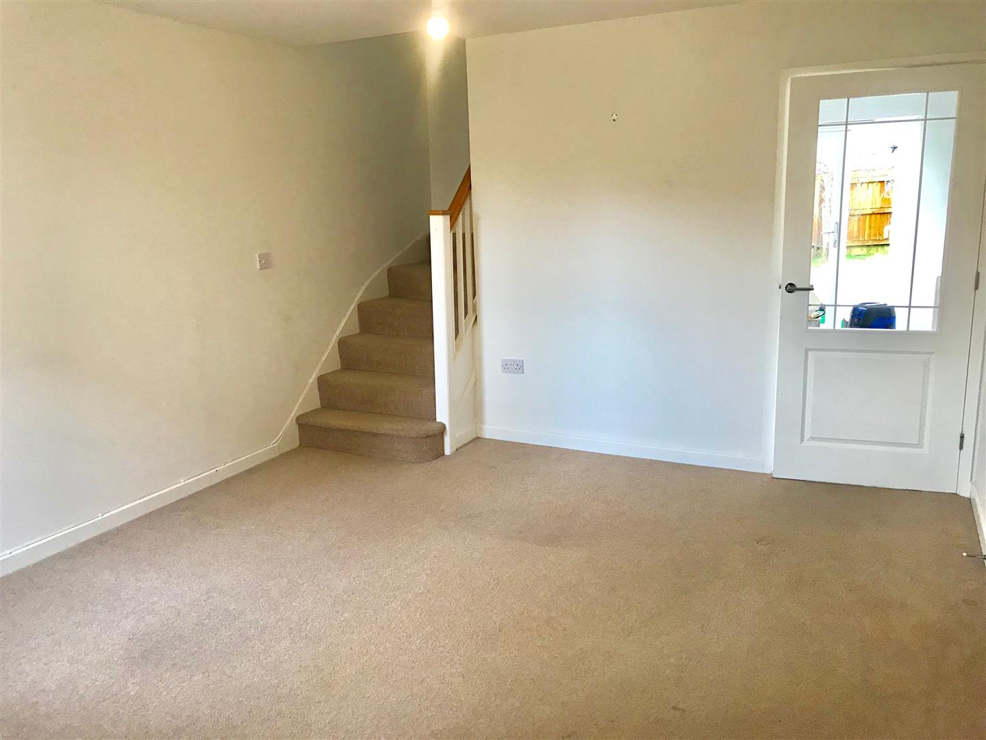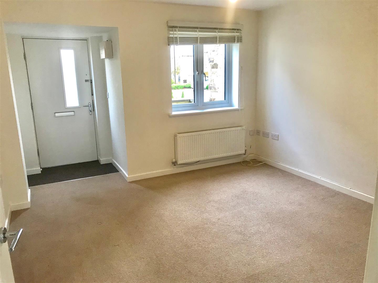 Lounge - 4.88m into entrance area x 3.63m (16' into entranc - Staircase ascending to the first floor. Window to the front elevation with fitted blind. Partly-glazed doorway opening into the kitchen/diner.