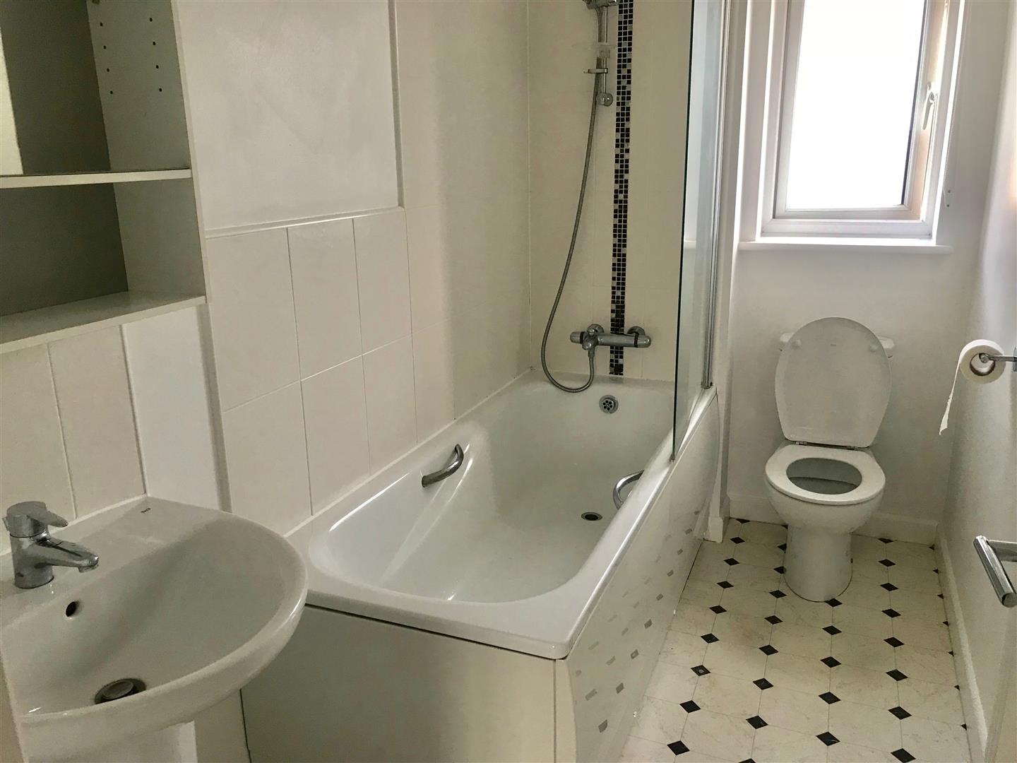 Bathroom - 2.82m x 1.47m (9'3 x 4'10) - Comprising bath with shower system and glass screen over, pedestal wash handbasin and wc. Partly-tiled walls. Obscured window to the front elevation.