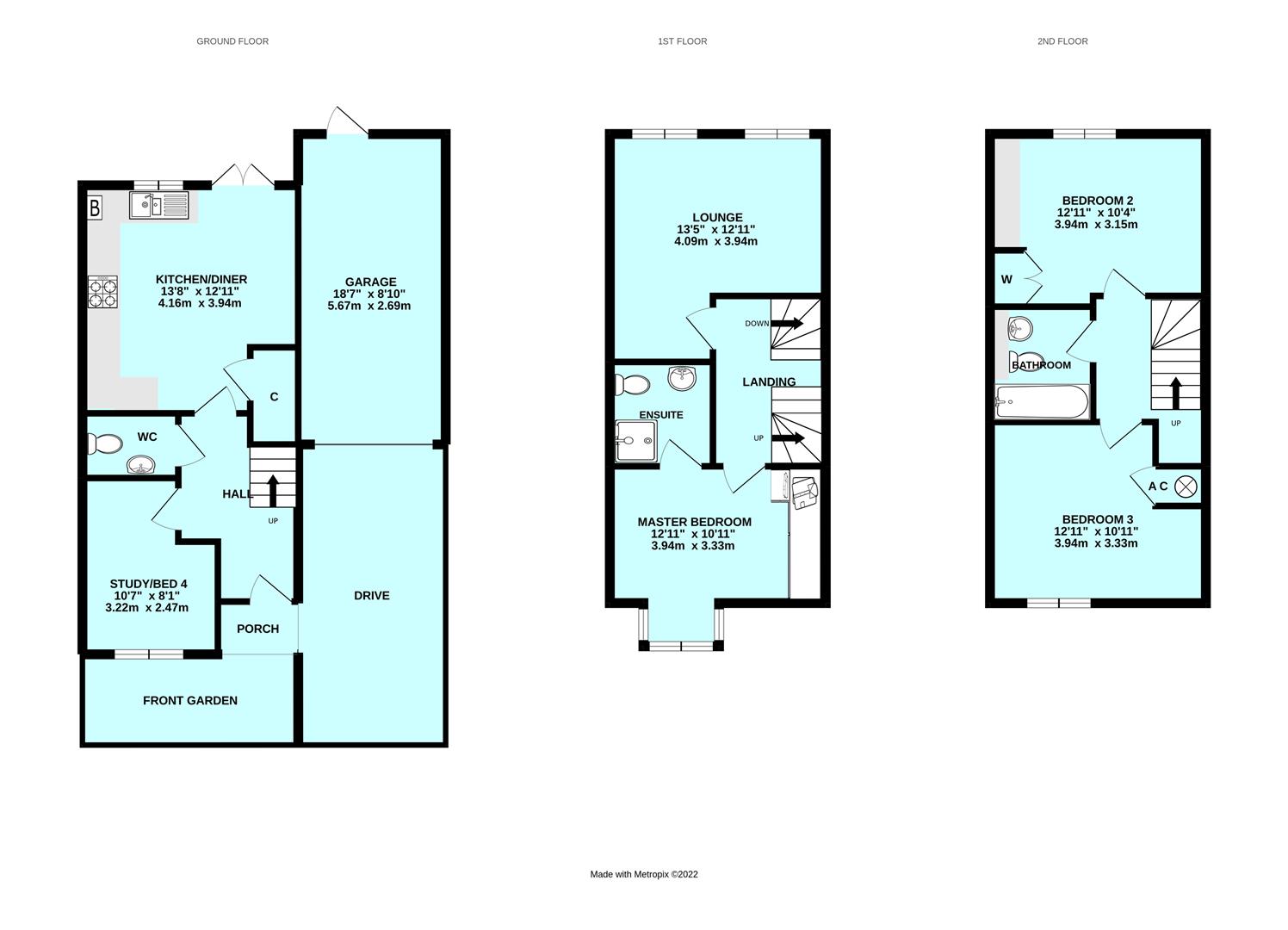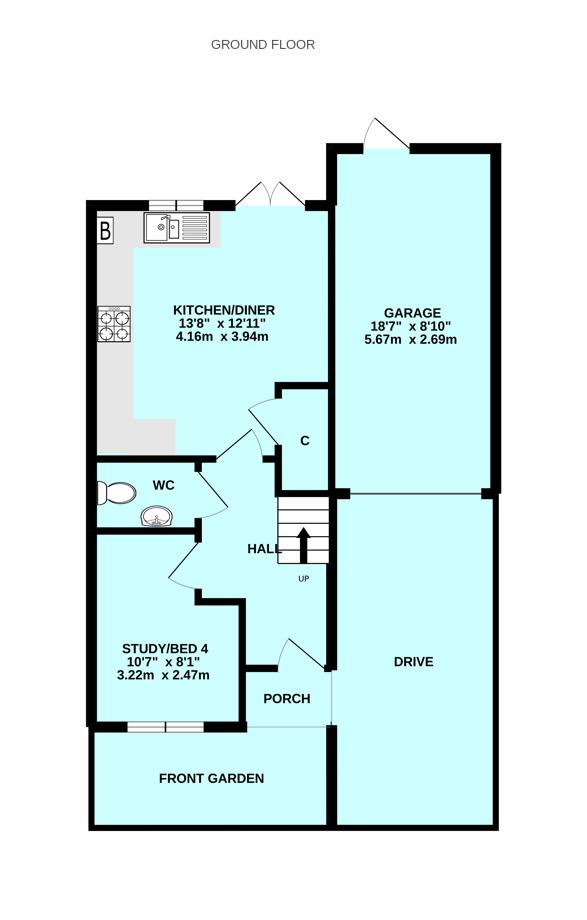 - Separate family bathroom, downstairs wc & study/bedroom 4