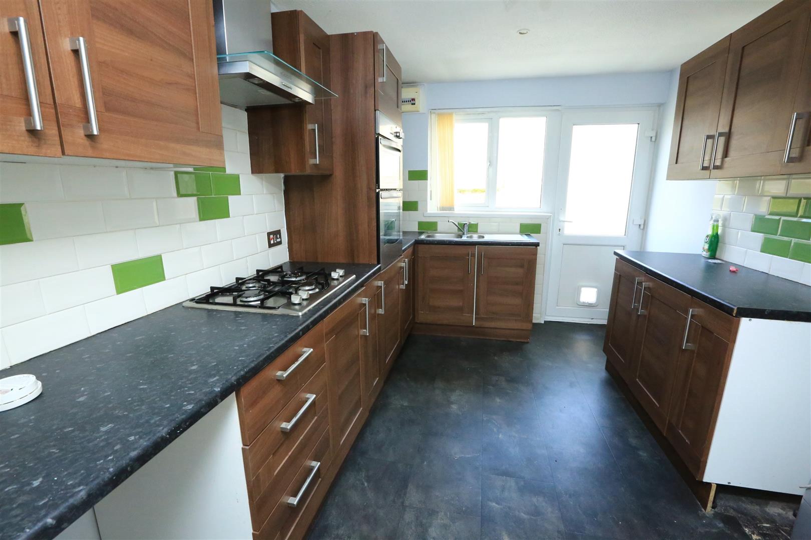 Kitchen - 3.69 x 2.70 (12'1" x 8'10") - Range of matching eye and base level units. Inset sink unit. Built in storage cupboard. Plumbing for washing machine. Built in oven and hob. Window and door to rear.