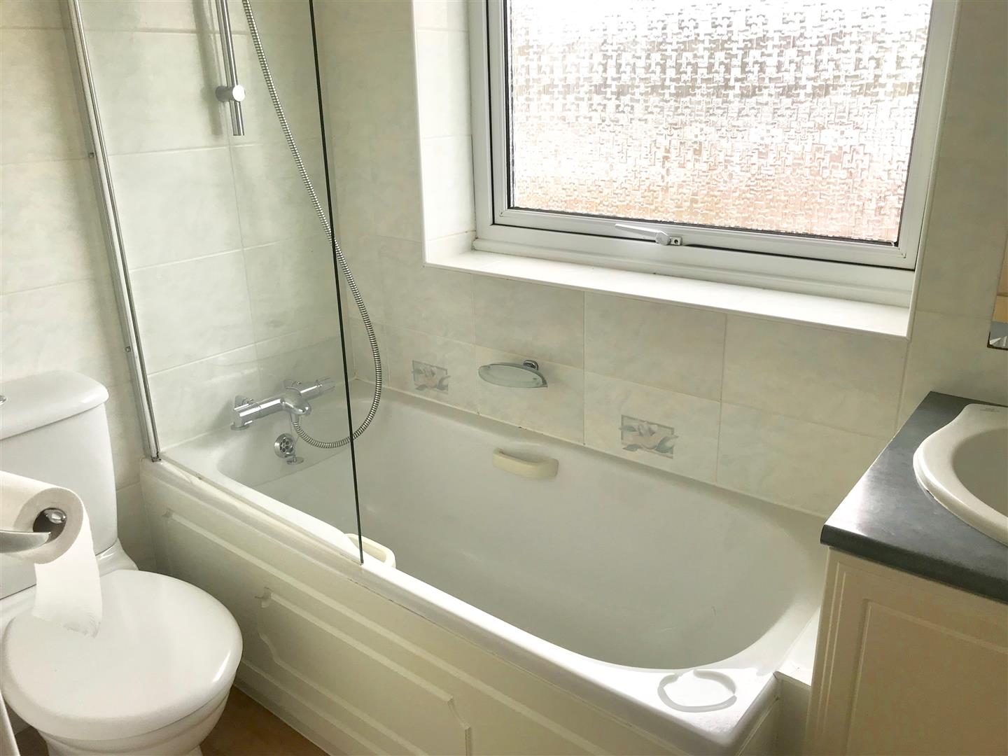 Bathroom - 2.18m x 2.11m (7'2 x 6'11) - Comprising a bath with a mixer tap, shower system and glass screen, wash handbasin with a cabinet beneath and a wc. Cupboard with shelving housing the gas boiler. Obscured window to the front elevation. Panelled ceiling with inset ceiling spotlights. Wall-mounted mirror.