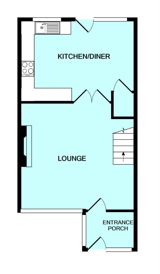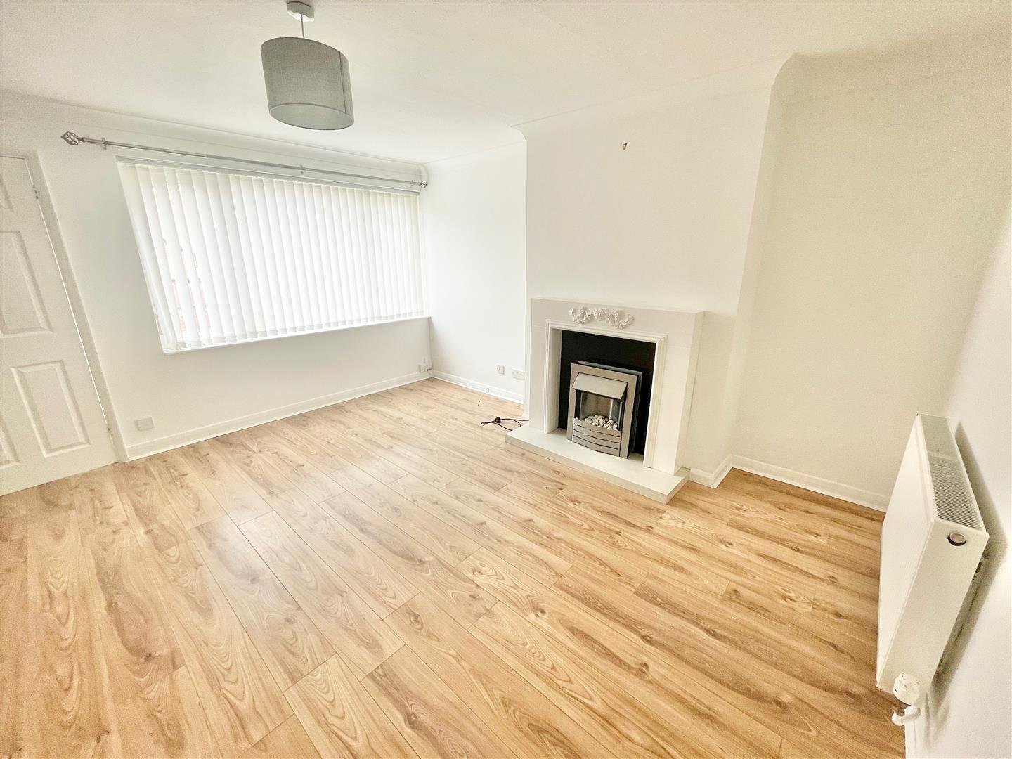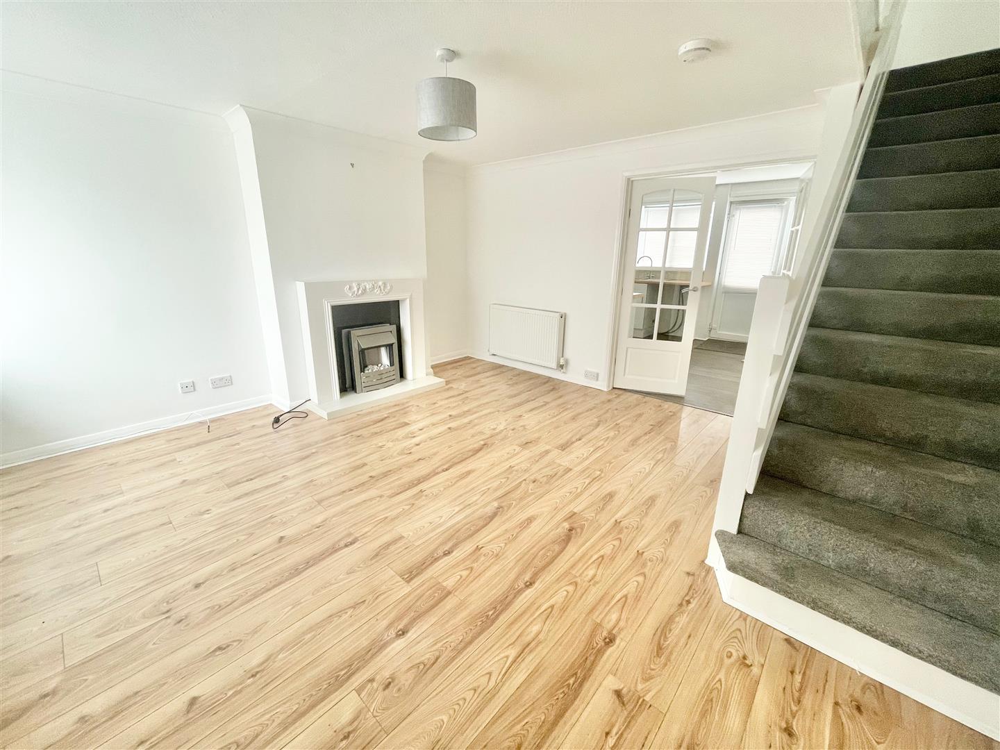 Lounge - 4.48 x 4.20 (14'8" x 13'9") - Feature fireplace with inset electric fire. Stairs rising to the first floor accommodation. Double-glazed window to the front elevation. Double doors leading into the kitchen/dining room.