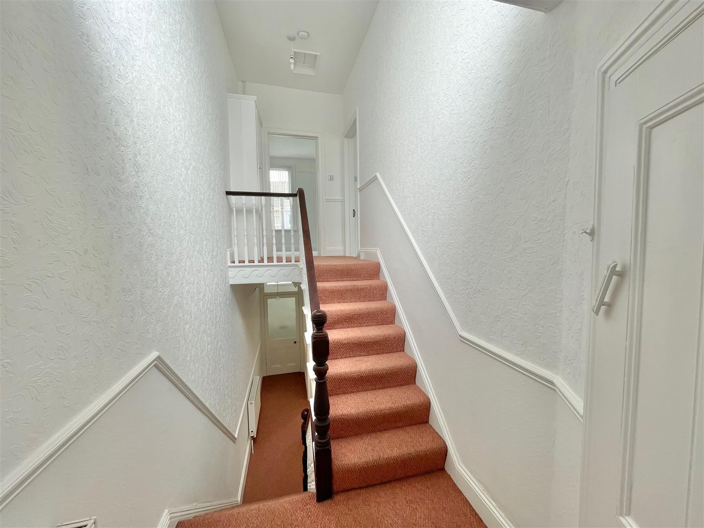 First Floor Main Landing - Built-in storage cupboard. Small loft hatch. Door to bedroom two.