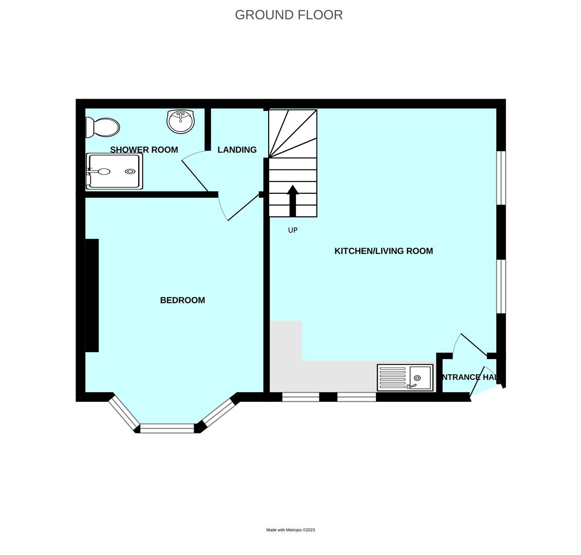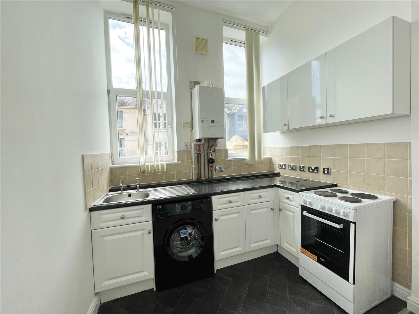 Kitchen/Living Area - 5.48 x 4.38 max dimensions (17'11" x 14'4" max dim - 2 double-glazed windows to the side elevation. Stairs rising to the bedroom and shower room. Within the kitchen area there is a series of matching white gloss eye-level and base units with blackened rolled-edge work surfaces and tiled splash-backs. Inset single drainer sink unit. Space and plumbing for washing machine. Please note that the washing machine in situ will be included within the tenancy. Free-standing electric cooker. Wall-mounted gas boiler. 2 double-glazed windows to the front elevation.