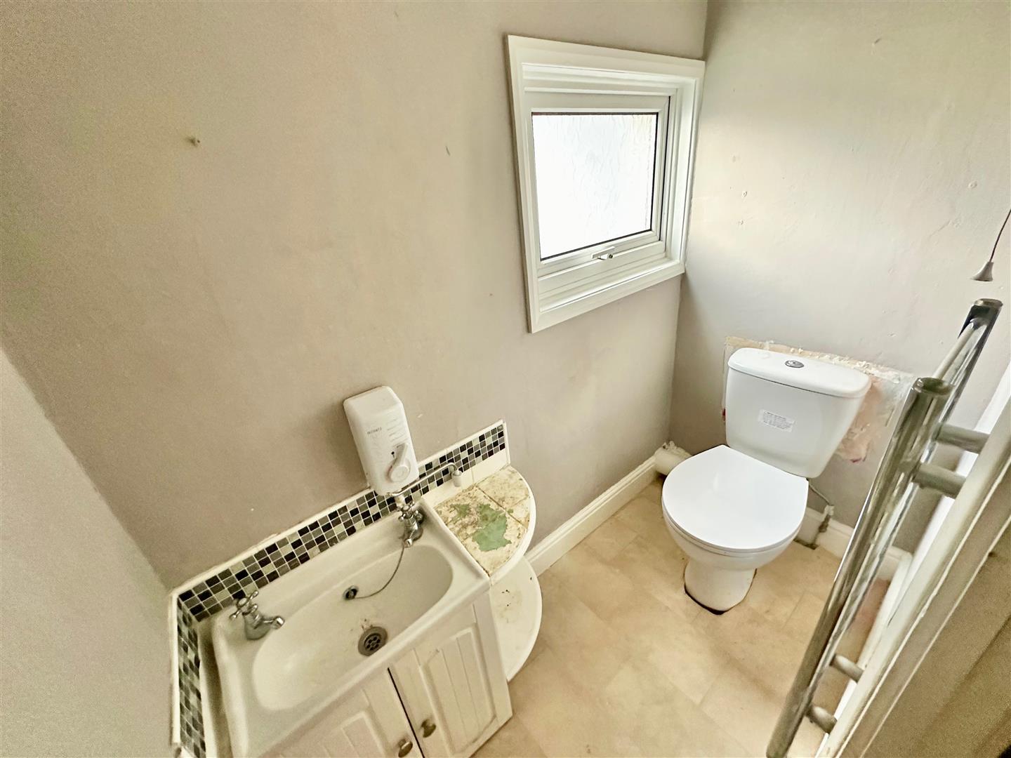 First Floor Wc - Comprising a wc and a small basin with a cupboard beneath. Chrome towel rail/radiator. Obscured window to the rear elevation.