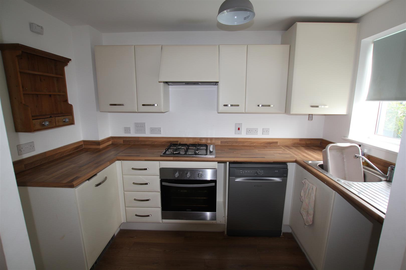 Kitchen - 3.02 x 1.87 (9'10" x 6'1") - Double-glazed window to the front. Fitted with a range of matching eye-level and base units with work surfaces. Inset single-drainer sink unit with mixer tap. Space for fridge/freezer and washing machine. Built-in 4-ring gas hob with electric oven beneath.