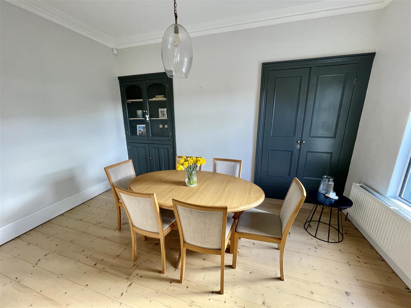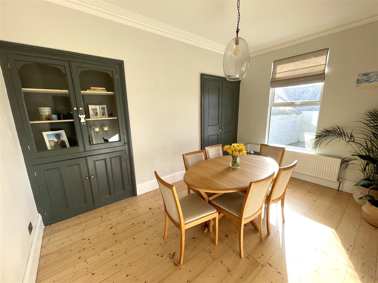 Dining Area - 4.38 x 2.96 (14'4" x 9'8") - Continuation of the exposed wooden floor. Double-glazed window to the rear. 2 built-in recessed storage and display cupboards - one housing the gas boiler. Opening leading into the kitchen area.