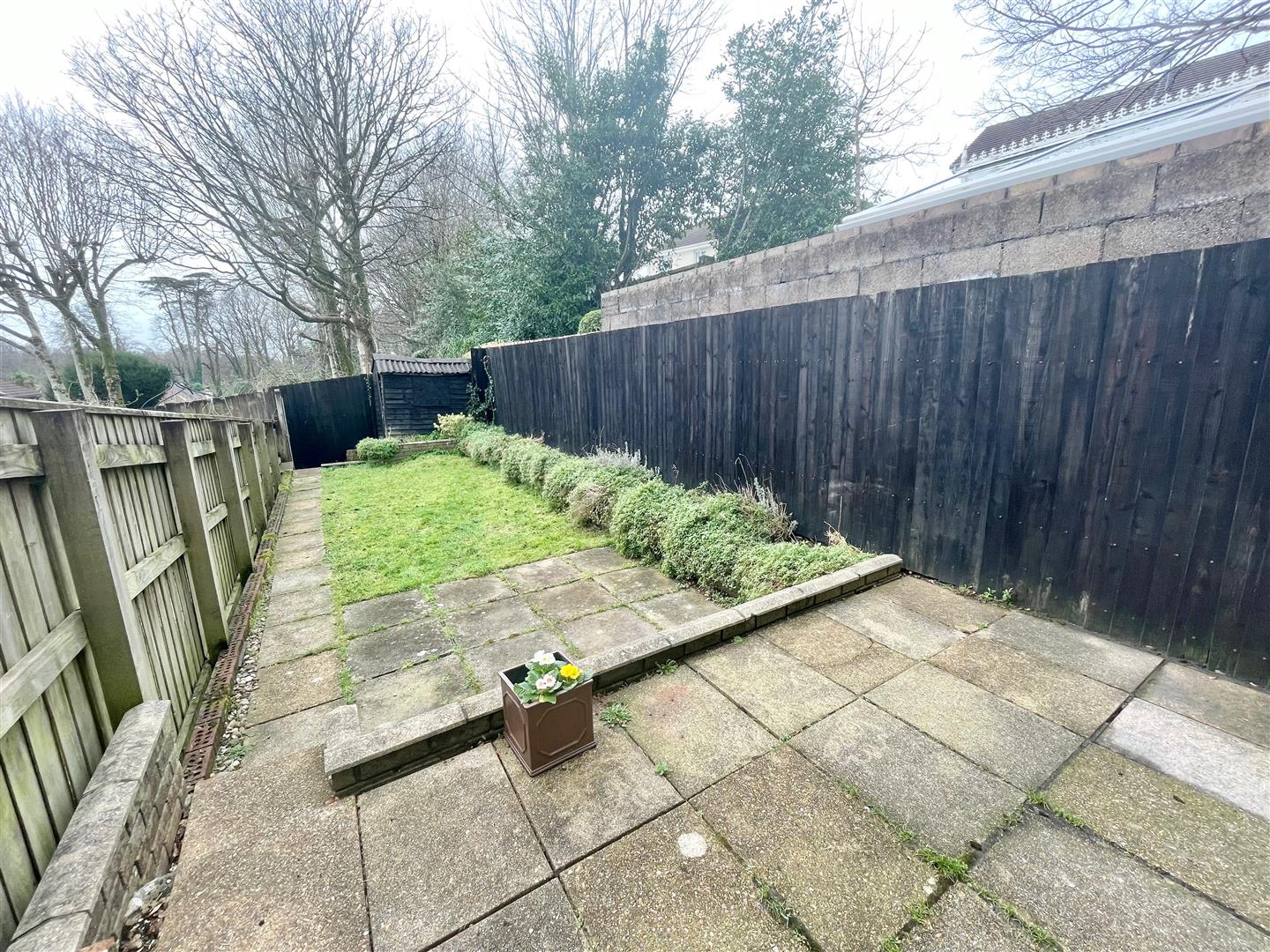 Outside - To the front of the property is a gravelled front garden area and an allocated parking space. At the rear there is a fence-enclosed garden with a paved area adjacent to the rear of the property and steps leading down to a further patio. Beyond this is a pathway leading to the end of the garden with a lawned area adjacent and raised planted borders. Located at the end of the garden is a timber shed.