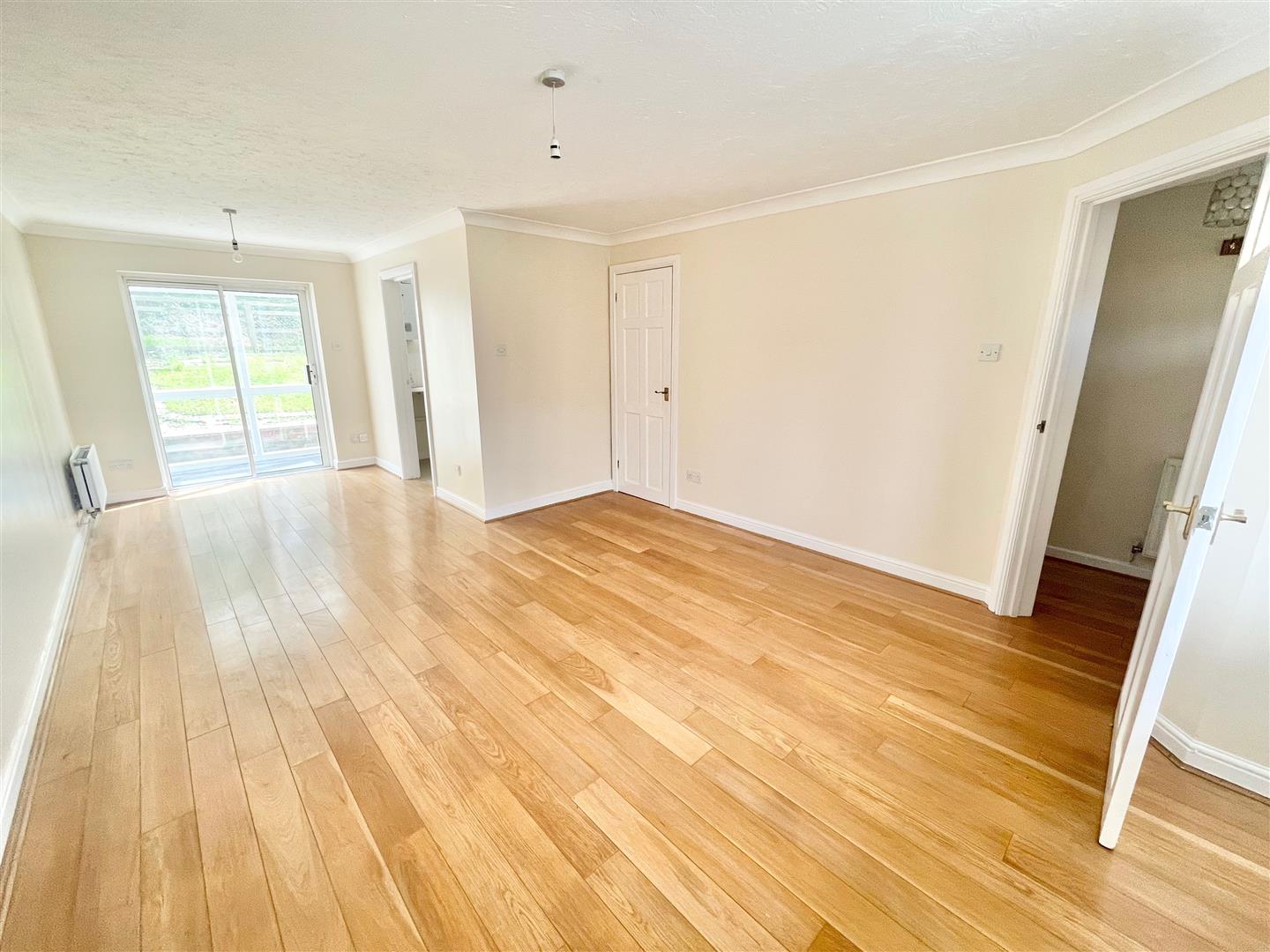 Lounge/Dining Room - Box bay window to the front elevation. Laminate floor. Sliding double-glazed doors leading to the rear porch. Door leading into the kitchen.