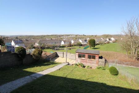 Outside - Steps lead down to the main entrance at the side of the property. To either side of the steps the area is gravelled and planted with flower bed. There is a paved area to the front of the property and a further paved area to the side with a block-built store. A path and steps lead around to the rear to a garden laid to lawn with a paved area, timber shed and further patio area at the bottom.