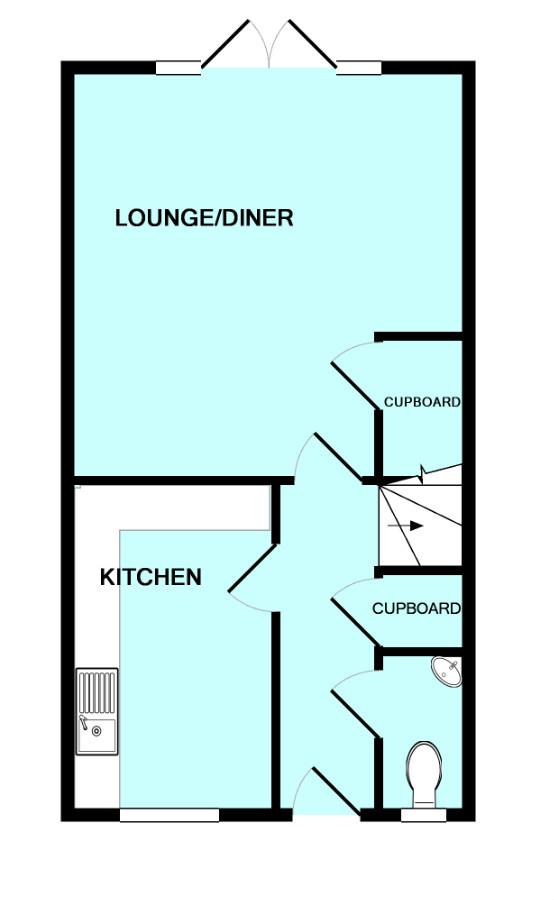 Lounge/Diner - 15' x 14' 7" (4.57m x 4.44m) - uPVC double-glazed French doors, with uPVC double-glazed side panel windows, opening to the rear garden. Laminate wood-effect floor throughout. Sizeable under-stairs storage cupboard.