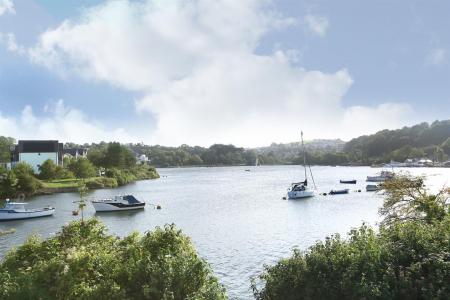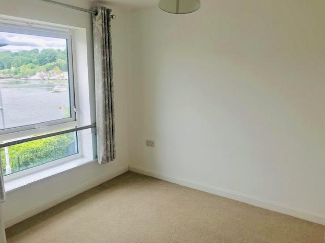 Bedroom Two - 10' 2" x 8' 5" (3.1m x 2.57m) - Glass and stainless-steel safety rail to the front of a uPVC double-glazed window enjoying a delightful view across Hooe Lake and the estuary. Free-standing combination wardrobe.