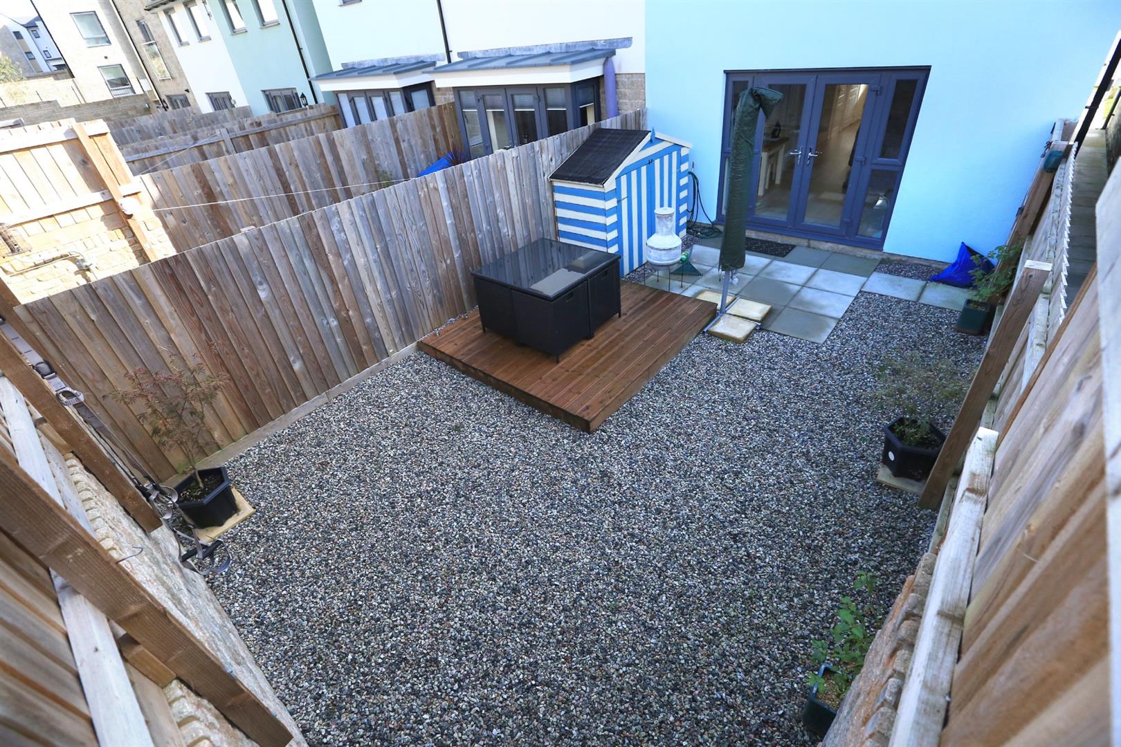 - Low-maintenance rear garden