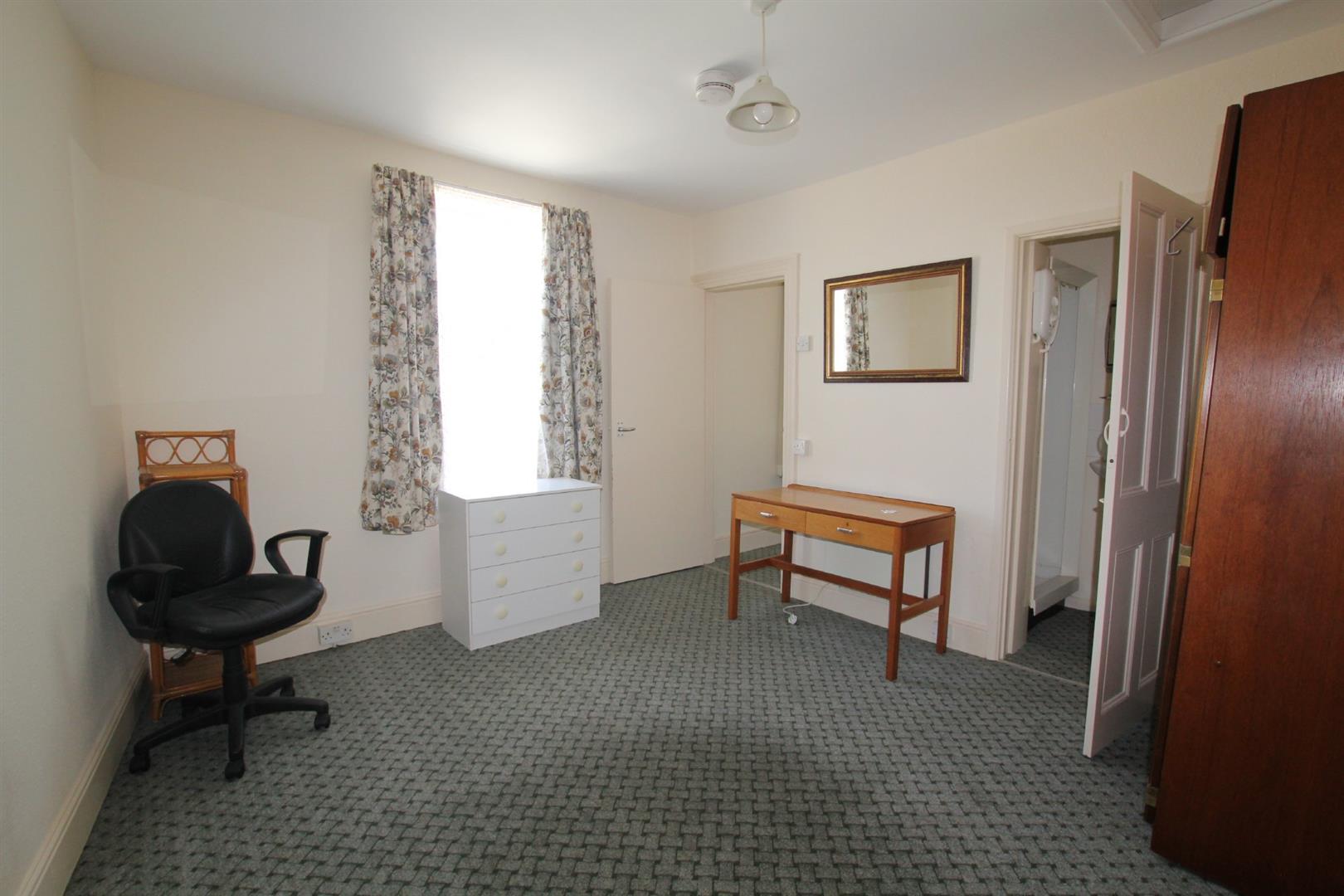 Bedsitting Room - 12' 7" x 11' 1" (3.84m x 3.38m) - Double-glazed window to the rear. Chest of drawers. Desk. Free-standing wardrobe. Chair. Independent oil heater. Door leading into the shower room.