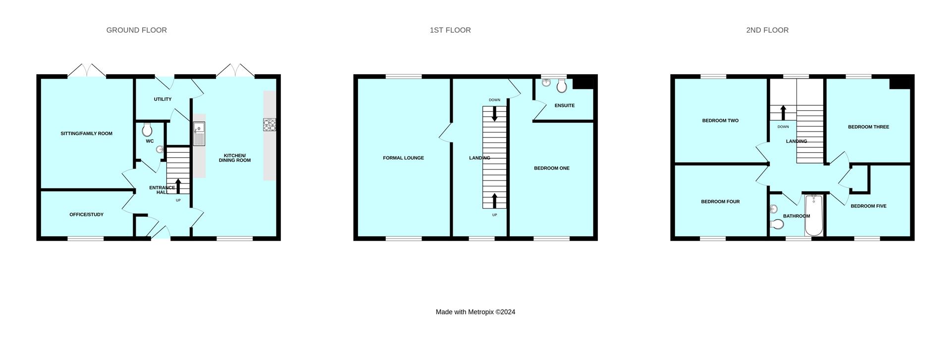 - 5 bedrooms, master ensuite shower room & family bathroom