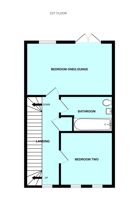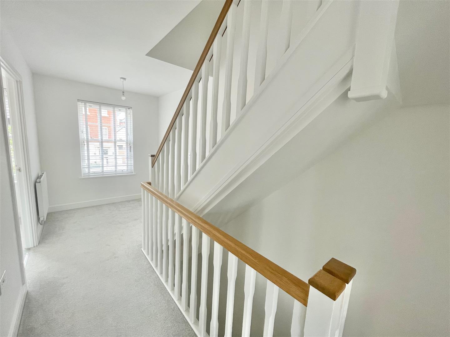 First Floor Landing - Built-in storage cupboard. Window to the front elevation. Stairs rising to the second floor. Doorway opening to bedroom one/lounge.