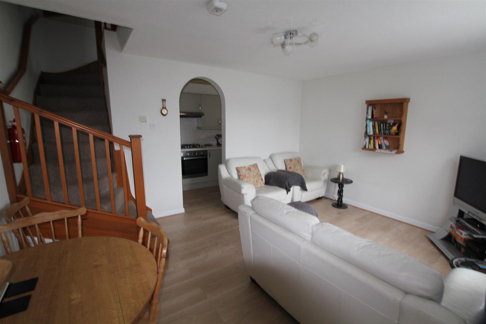 Lounge/Dining Room - 4.46 x 3.57 (14'7" x 11'8") - Double-glazed window to the front elevation. Wood-effect laminate floor which extends into the kitchen. Turning staircase rising to the first floor accommodation. Archway leading into the kitchen.