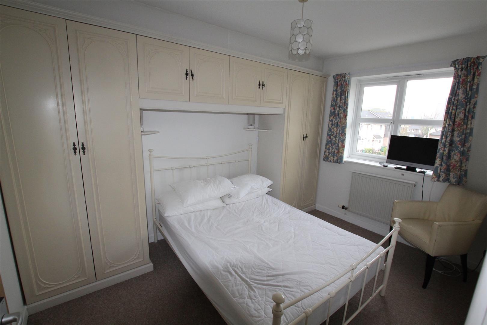 Bedroom One - 3.60 x 2.56 (11'9" x 8'4") - Double-glazed window to the front. Range of fitted wardrobes and head-height storage units. Bed and chair in situ.
