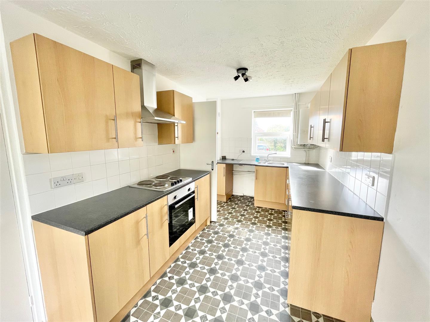 Kitchen/Dining Room - 21' 5" x 8' 0" (6.55m x 2.46m) - Double-glazed window to the front. Double-glazed door leading out to the rear garden. Fitted with a range of modern matching eye-level and base units with roll-edged work surfaces. Inset single-drainer 1? bowl stainless-steel sink unit with mixer tap. Range of tiled splash-backs. Inset electric hob with electric oven beneath. Space and plumbing for a washing machine. Space for fridge/freezer.