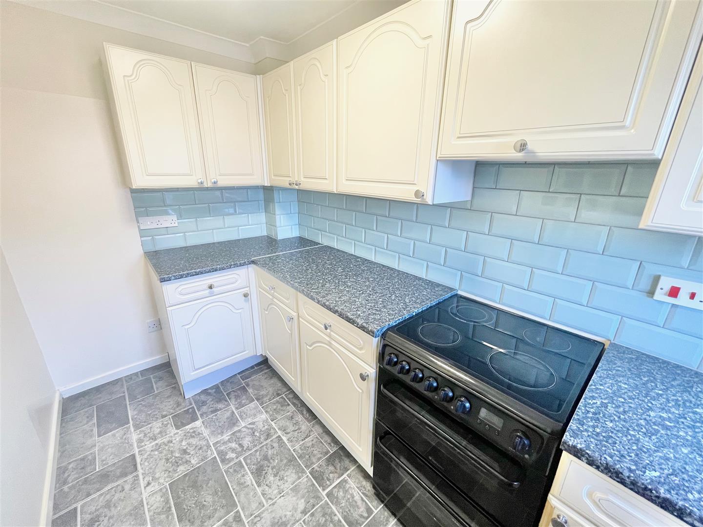 Kitchen - 3.49 x 1.75 (11'5" x 5'8") - Range of matching base and eye-level units with rolled-edge work surfaces and tiled splash-backs. Inset single drainer sink unit with a mixer tap. Wall-mounted gas boiler. Space and plumbing for washing machine. Free-standing electric cooker. Space for an upright fridge-freezer.