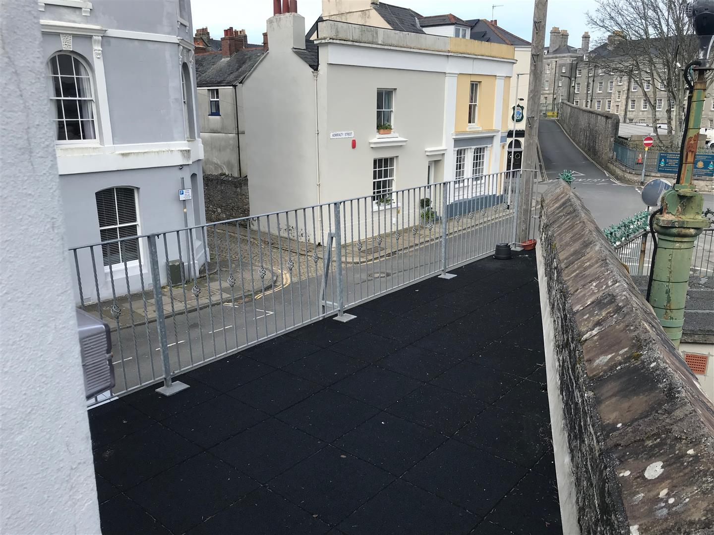 Sun Terrace - An open outlook over the local district with views towards Millbay docks and Stonehouse Commando Barracks.
