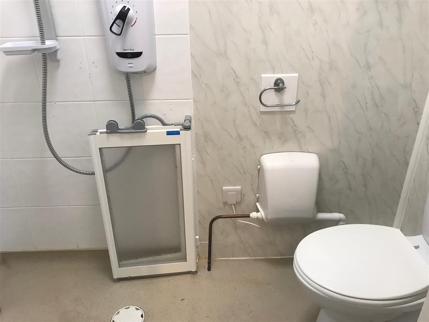Shower Room - Concertina-style door leading into the wet room-style area. Low level toilet, corner sink unit and a walk-in shower with tiled area surround. Built-in extractor. Wall-mounted mirrored cabinet.