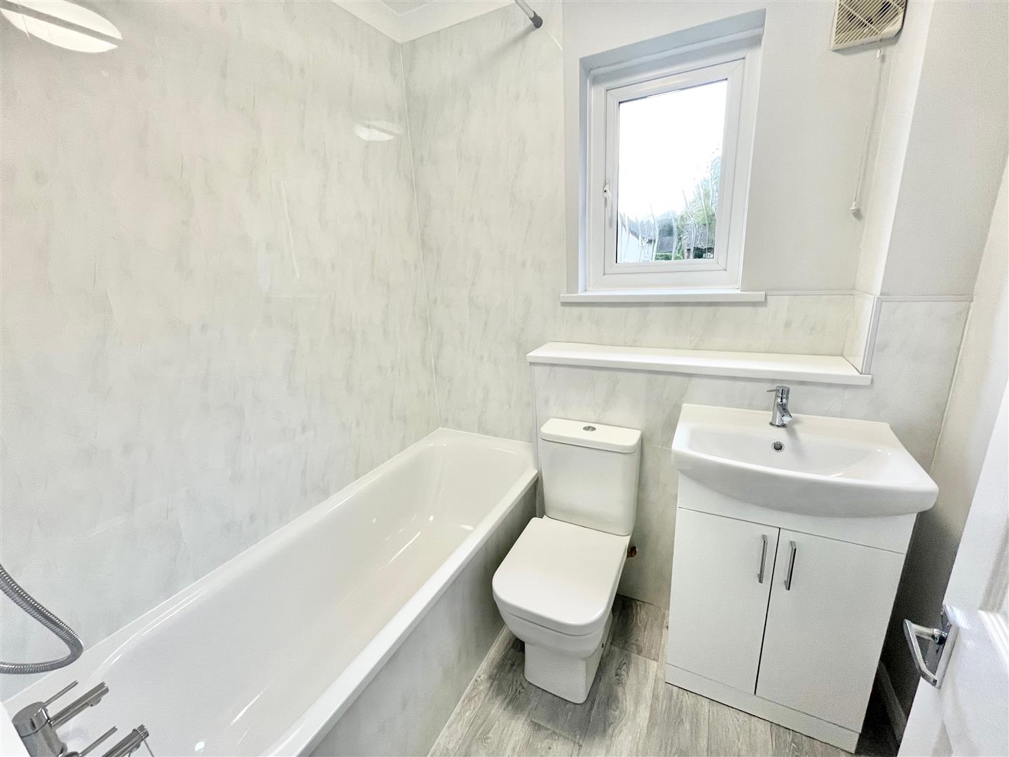- Newly-fitted modern bathroom