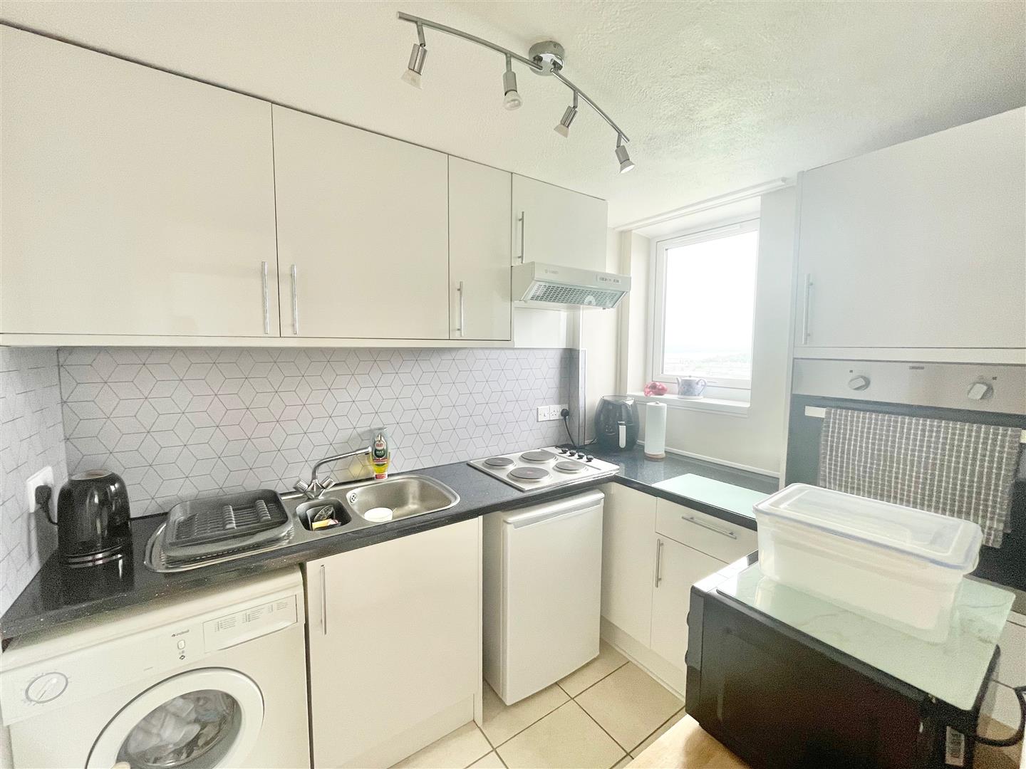 Kitchen - 2.58 x 1.93 incl kitchen units (8'5" x 6'3" incl k - Range of matching eye-level and base units with a range of work surfaces. Inset one-&-a-half bowl single drainer sink unit. Built-in 4-ring electric hob. Space and plumbing for washing machine. Space for under-counter refrigerator. 2 built-in storage cupboards, one of which houses the hot water tank. Double-glazed window to the side elevation.