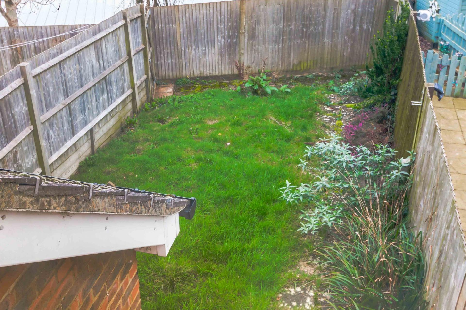 Outside: Lawned rear garden.