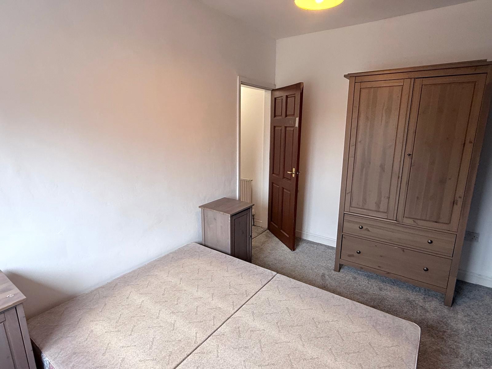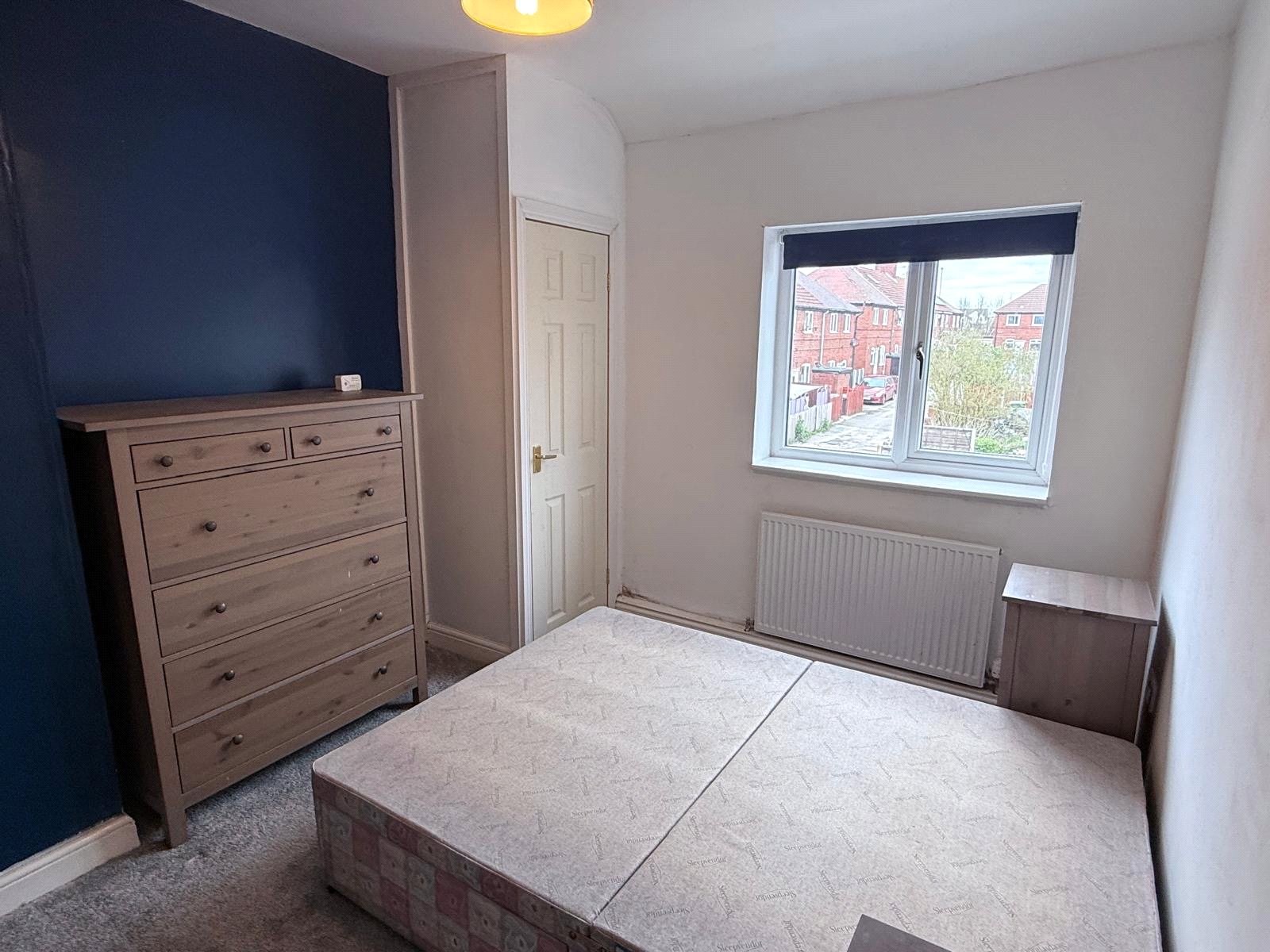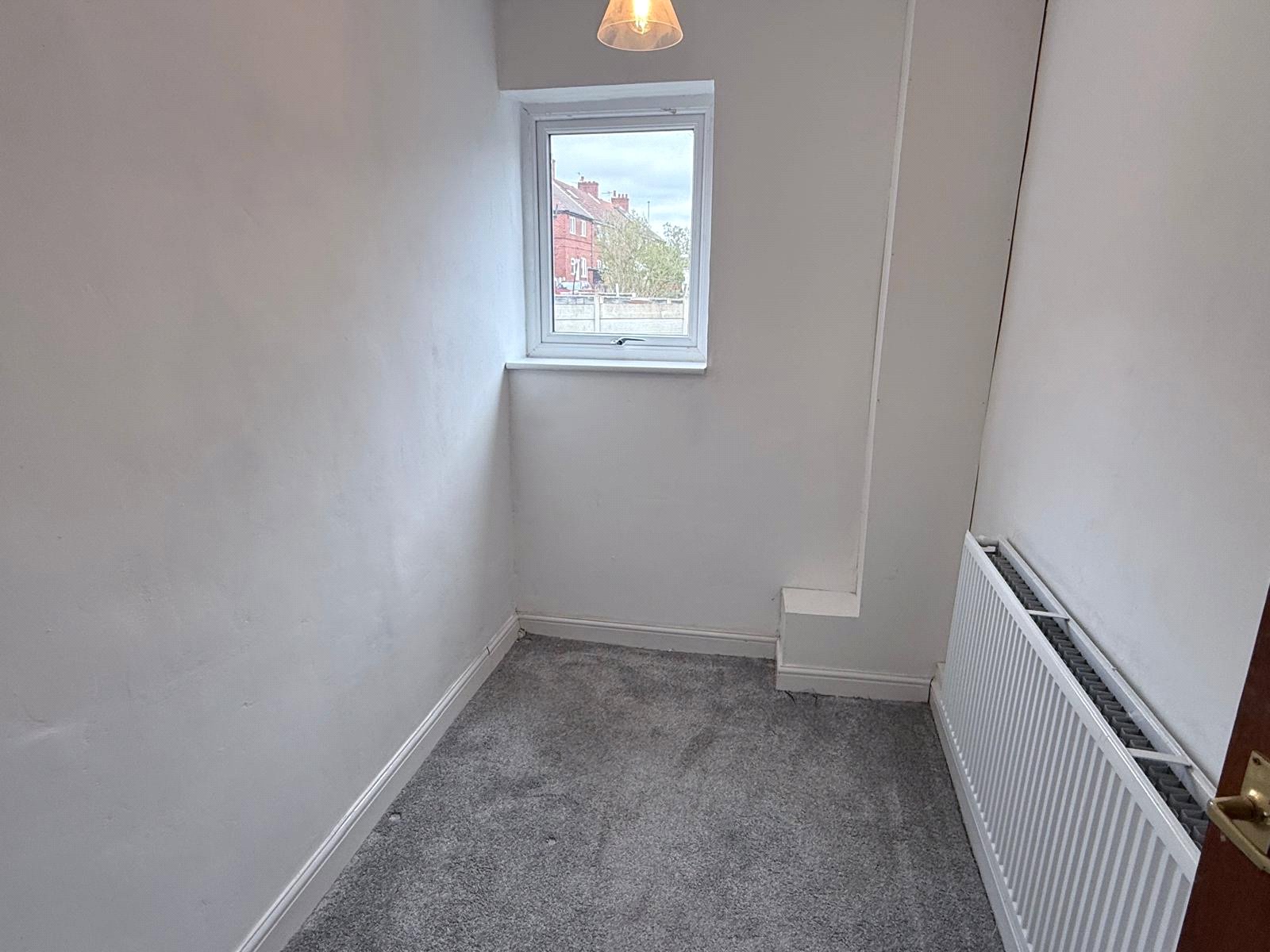 Bedroom Rear 9'8" x 12' (2.95m x 3.66m). With double glazed window, central heating radiator, cupboard housing central heating boiler