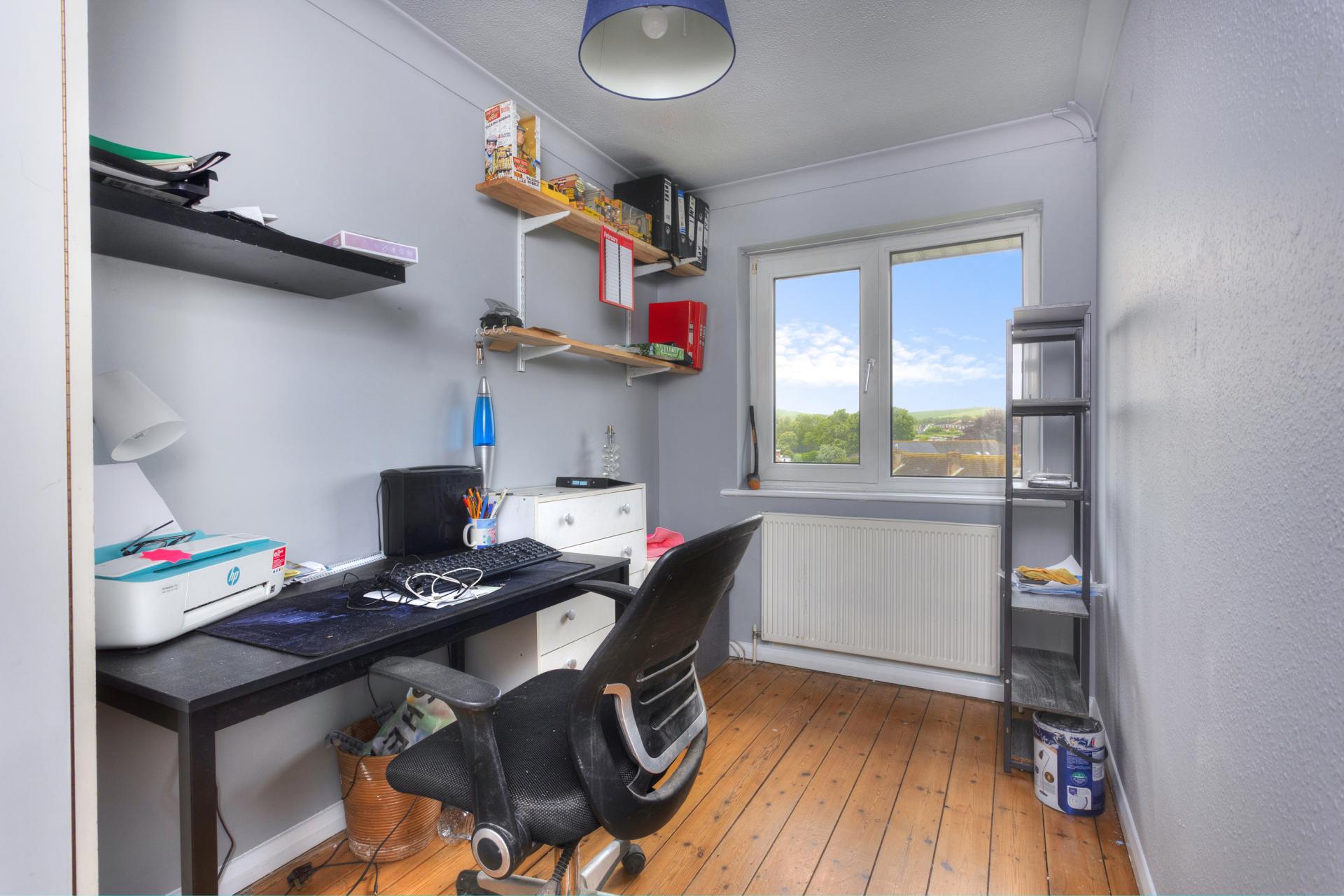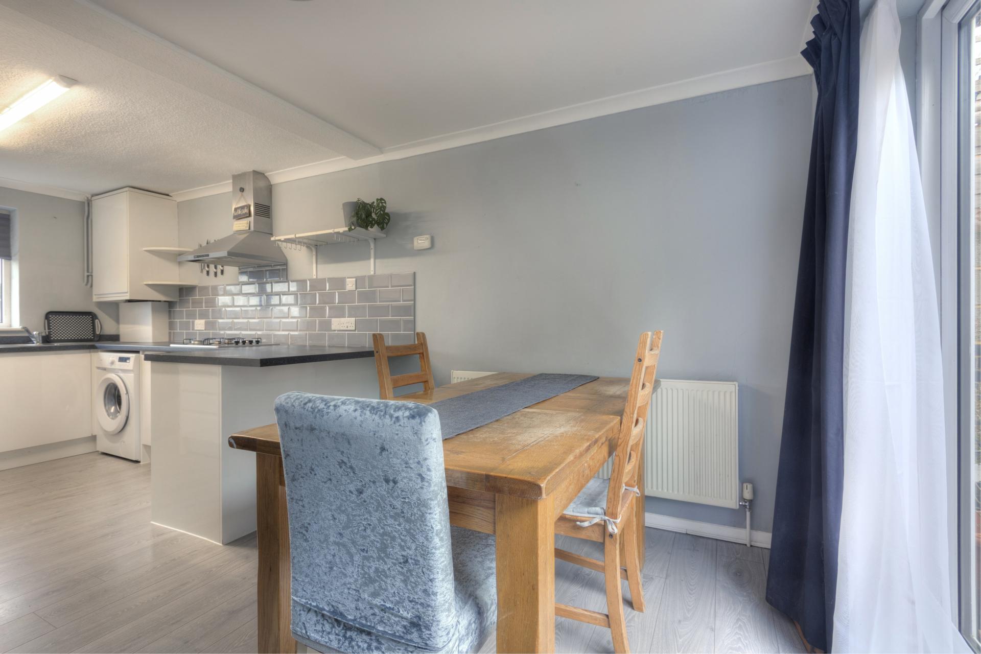 This spacious four-bedroom home offers well-proportioned accommodation and a west-facing tiered rear garden. The bright lounge features wooden floors and overlooks the garden, while the open-plan kitchen and dining area includes a built-in pantry and patio doors leading directly to the outdoor space. The modern fitted kitchen comes complete with a gas hob, electric oven, fridge/freezer, dishwasher, and washing machine. The home benefits from a contemporary bathroom with a bath and overhead shower, along with a separate WC. There are three double bedrooms and one single bedroom, providing flexible living arrangements. Outside, the west-facing garden offers a patio area and steps leading to a large lawn, with side access for convenience. Additional features include an integral garage and off-road parking for two cars.