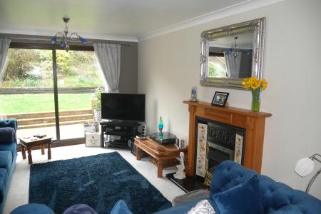 LOUNGE 18' 6" x 11' 6" (5.64m x 3.51m) Double glazed sliding patio with full height window to one side leading to rear garden, two radiators, wood surround fireplace with tiled hearth (not connected), double glazed window to front aspect, panelled door, ceiling coving, smoke alarm.