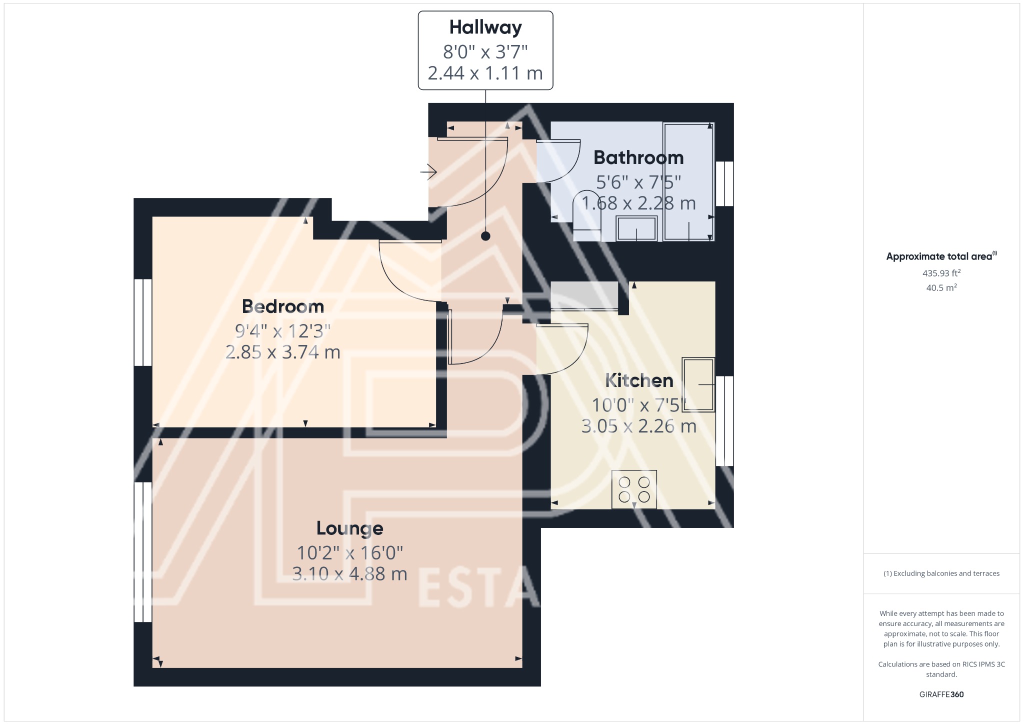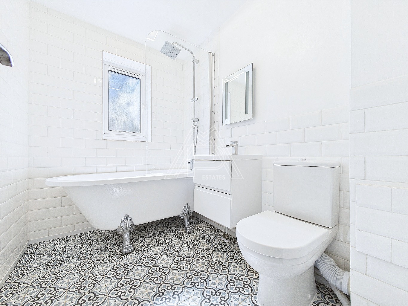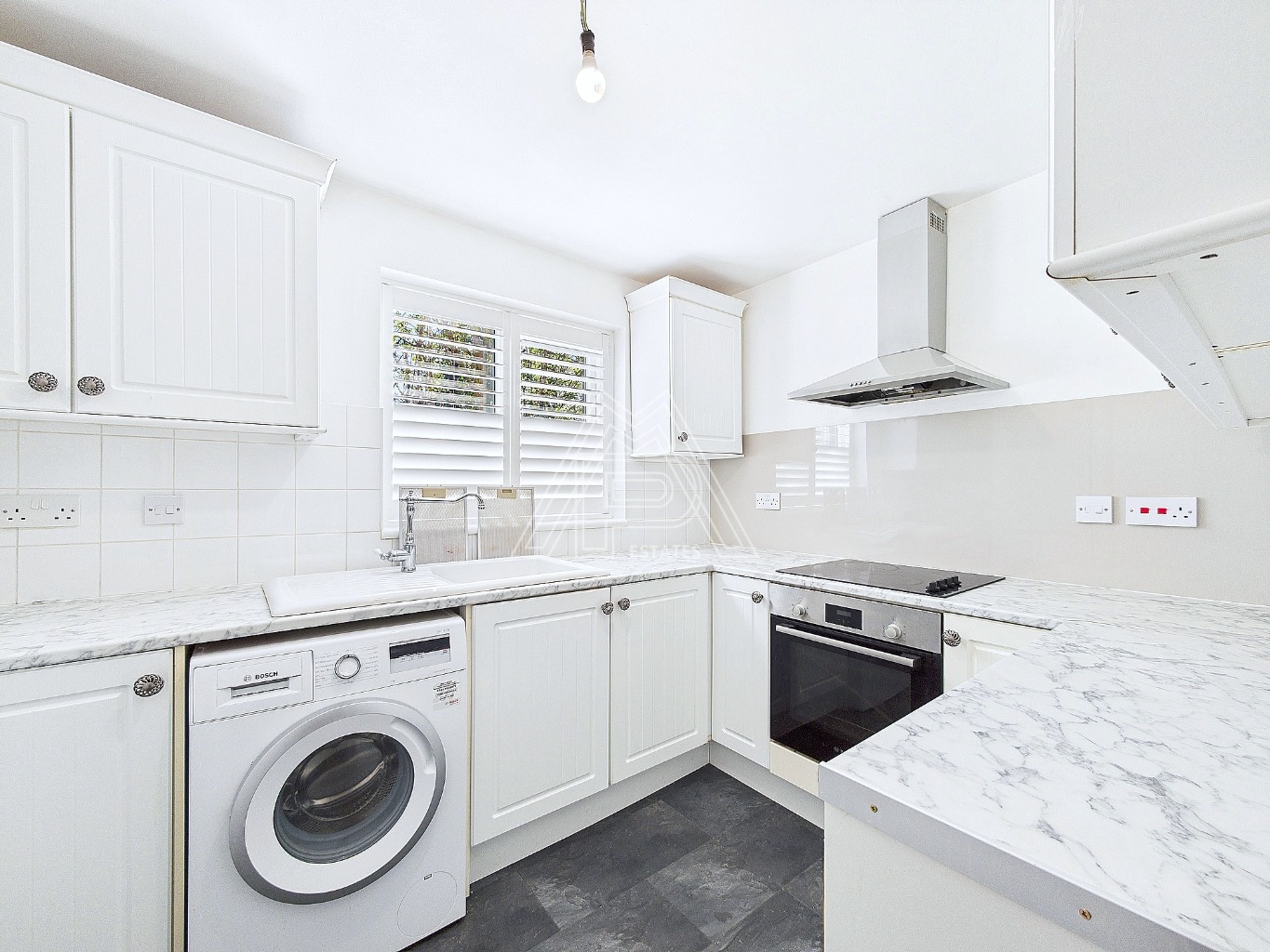 The flat features a bright, freshly decorated interior with a spacious living/dining area and a fully equipped modern kitchen. The bathroom is stylish and practical, with clean finishes and modern fittings.