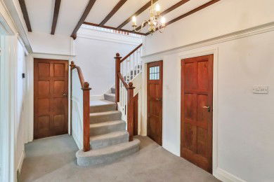 A spacious and imposing detached family house set well back from the road in large level gardens with parking for numerous cars. Occupying an excellent residential position in this sought after, semi-rural location in the heart of Kenley with the convenience of being located within a short distance of Kenley Station, local shops and bus services on the Godstone Road. Purley Town Centre is just over a mile away with a good choice of shops, supermarket, library, swimming pool and main line railway station serving both Croydon and London. There is a good choice of schools for children of all ages in the area and many fine open spaces and sports facilities all easily accessible. There is A delightful mature garden that is laid mainly to lawn with a small well established private woodland at the end. The front offers ample parking on block paved driveway with space for several cars with access to the single detached garage.