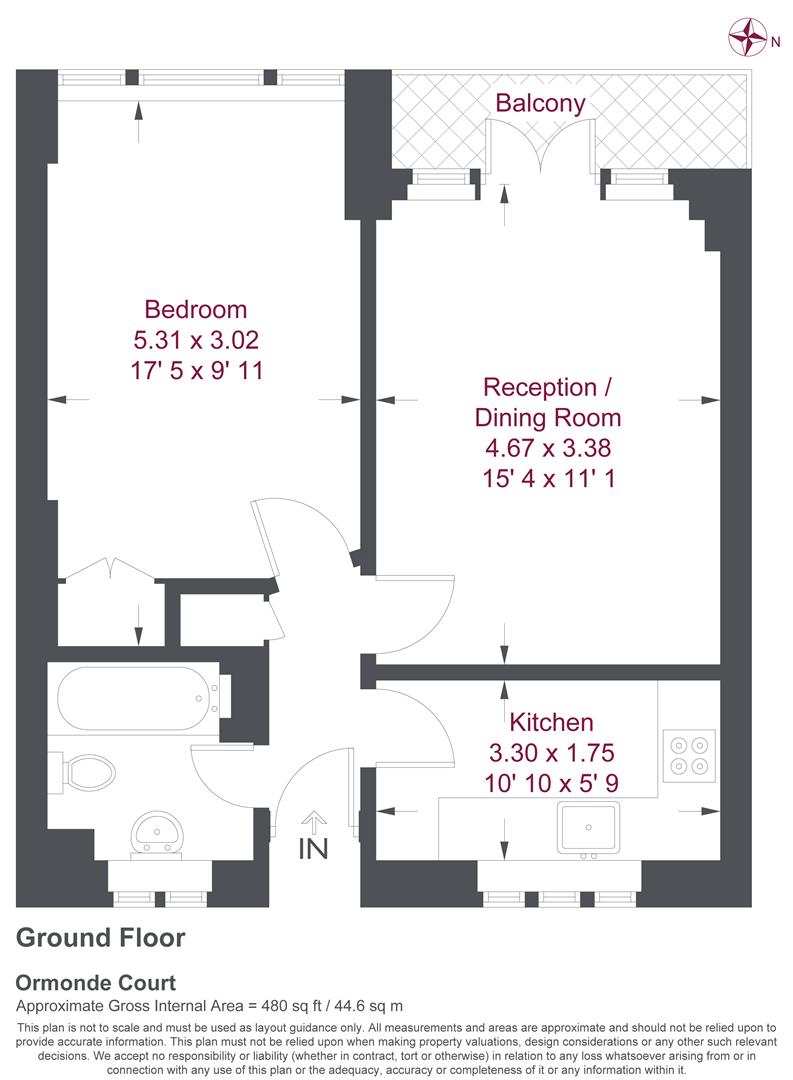 The property comprises a large, bright reception / dining room, good sized double bedroom, modern kitchen and family bathroom. There is also direct access out to the beautifully maintained communal gardens.