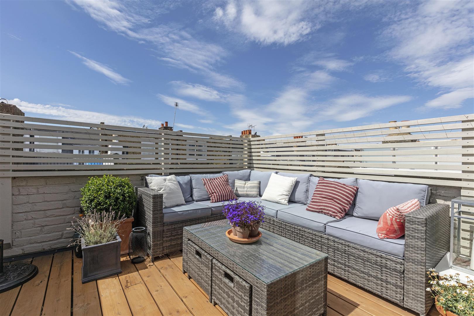 Beautifully presented three bedroom, two bathroom split level flat to rent located on a popular residential road in West Putney. There is a lovely kitchen / breakfast room with doors out to a private terrace and the reception room is spacious and bright with space to dine. The property also benefits from a second private west facing terrace which is accessed from the third bedroom