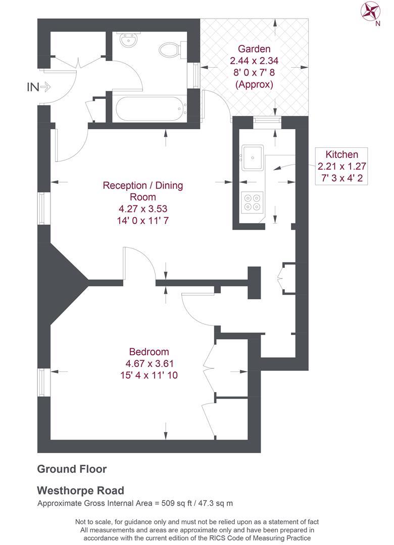 Well presented one bedroom flat with private rear garden. The property comprises a lovely open plan kitchen / reception...