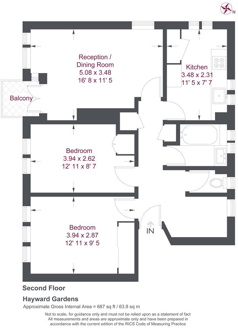 A very well presented 493 Sq Ft purpose built one bedroom second floor floor flat with a private south facing balcony lo...