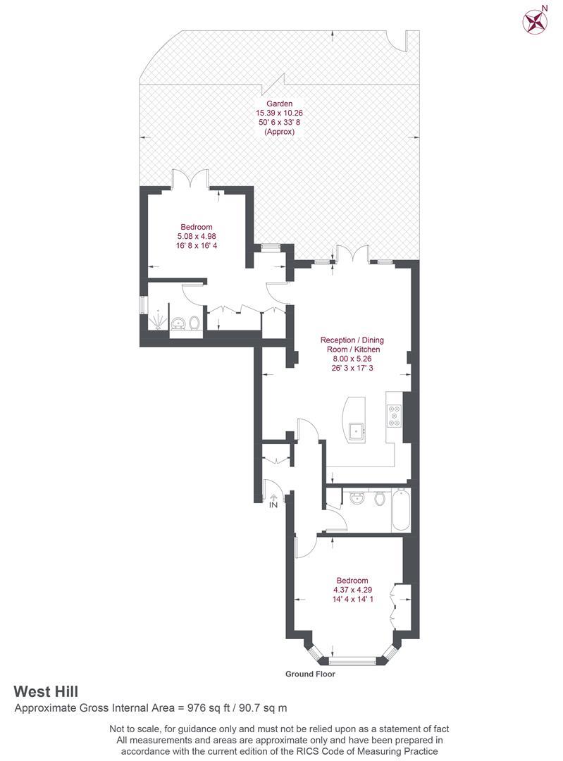 A very well presented two-bedroom, two bathroom (one-suite) modern apartment with communal off street parking and a 50ft private west facing garden. The property has two larger than average bedrooms, with the 16ft primary bedroom to the rear of the property benefiting from an en-suite luxury shower room with direct access to the garden. The property has recently been refurbished throughout, offers hi-spec built in AEG kitchen appliances and generous areas for storage. The property is located close to the junction of Lytton Grove and West Hill.