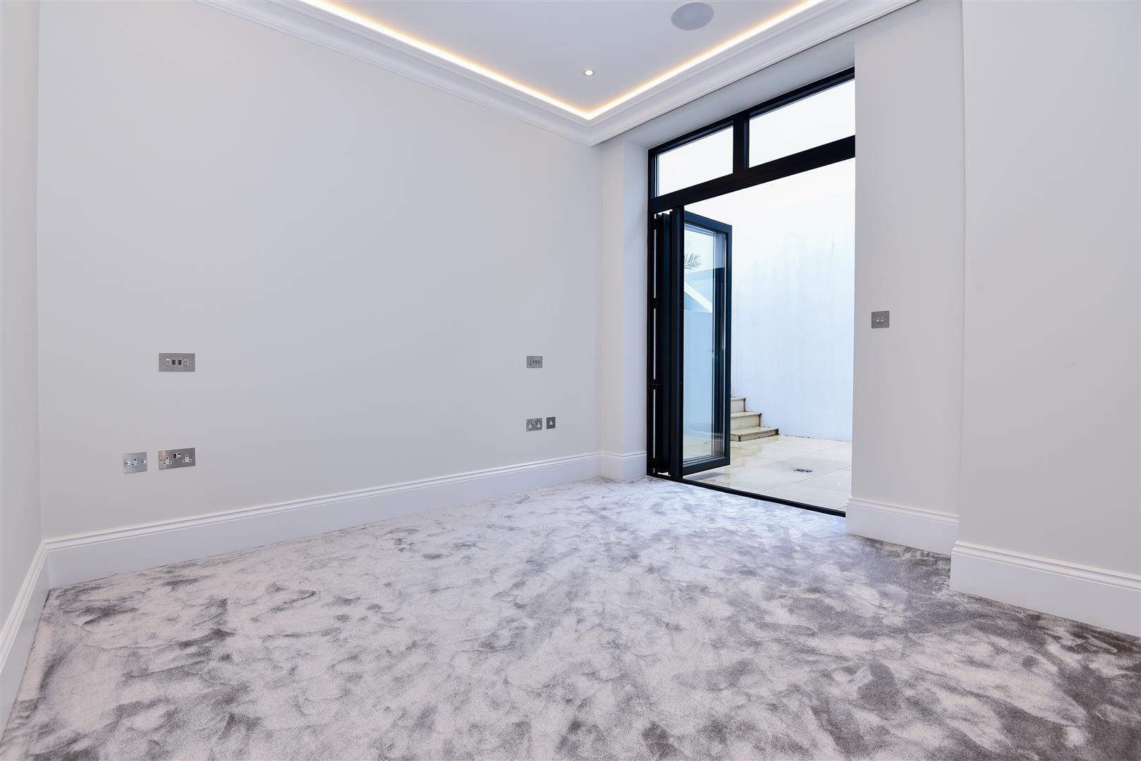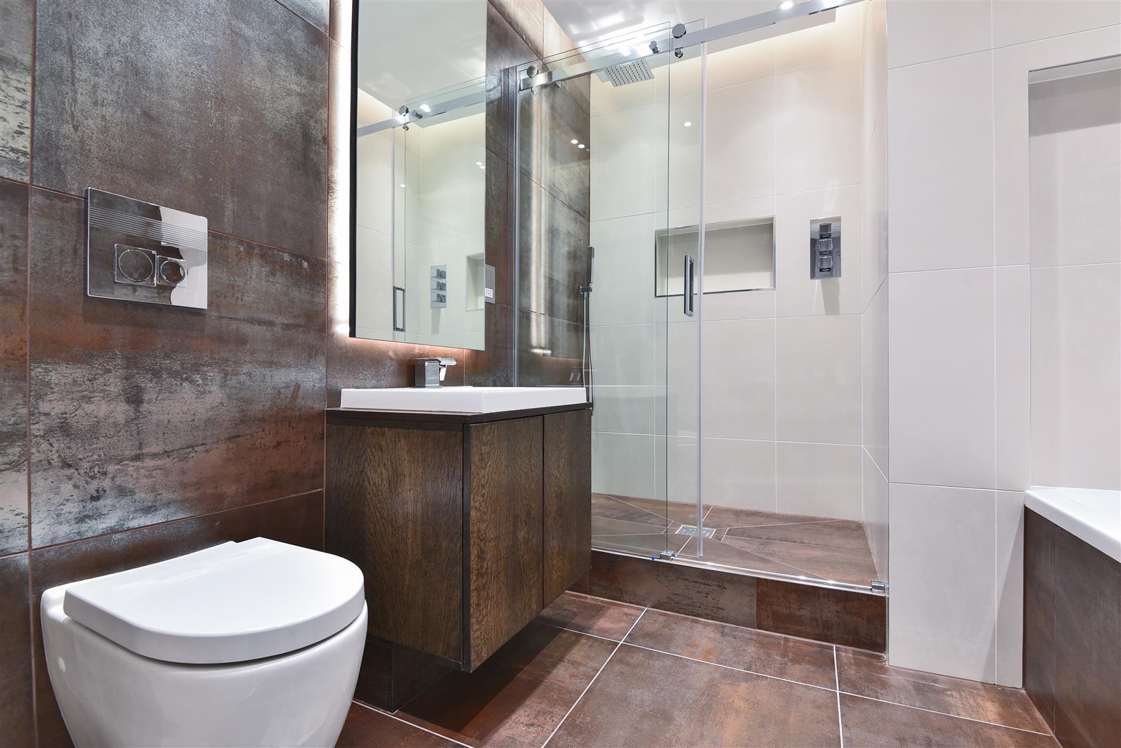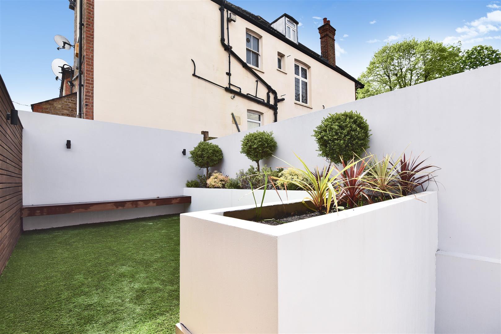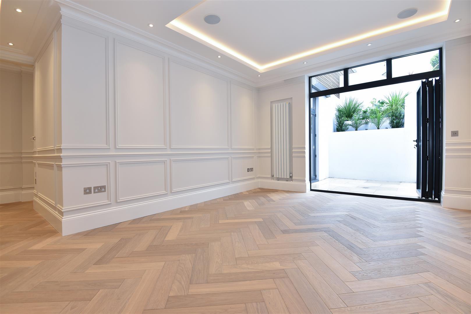 Immaculately presented throughout, the property offers three bedrooms, two of which are en-suite, containing ample in-built storage. The impressively high quality open plan kitchen and living area offers great space, with bi-folding doors providing direct access onto the beautifully landscaped private garden. Specification throughout is incredibly modern with beautiful high ceilings, top of the range kitchen appliances and beautifully styled bathrooms. Both a highly contemporary and characterful apartment, this property is truly unique.