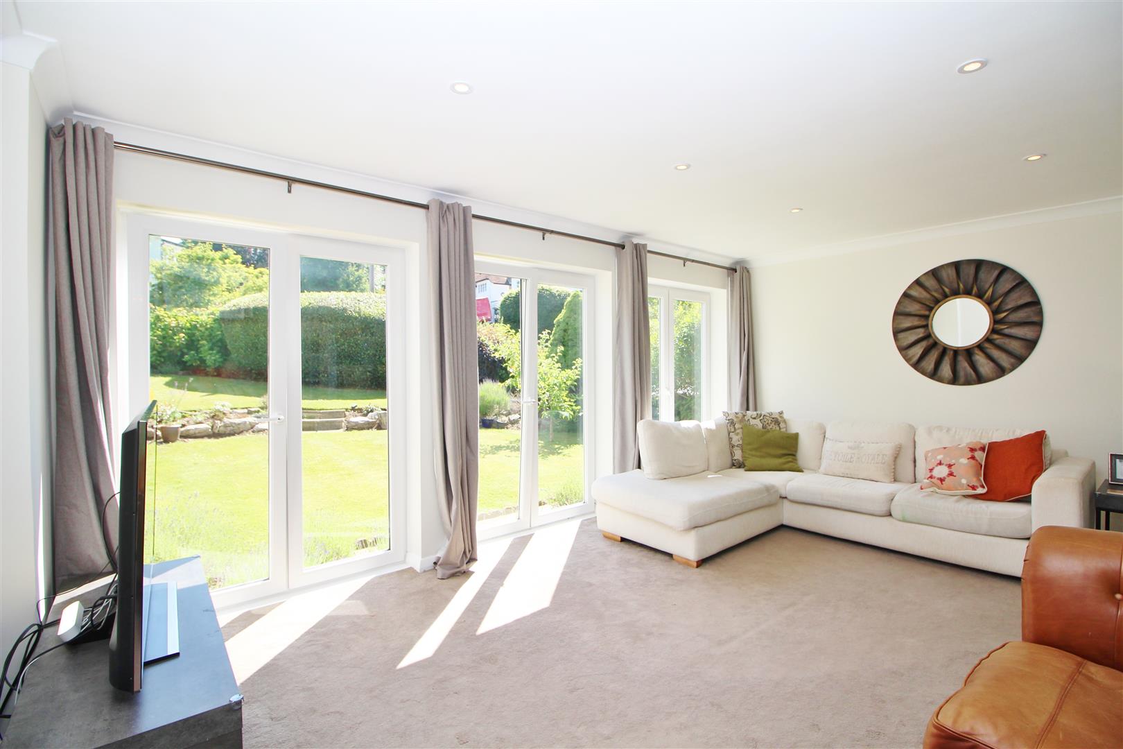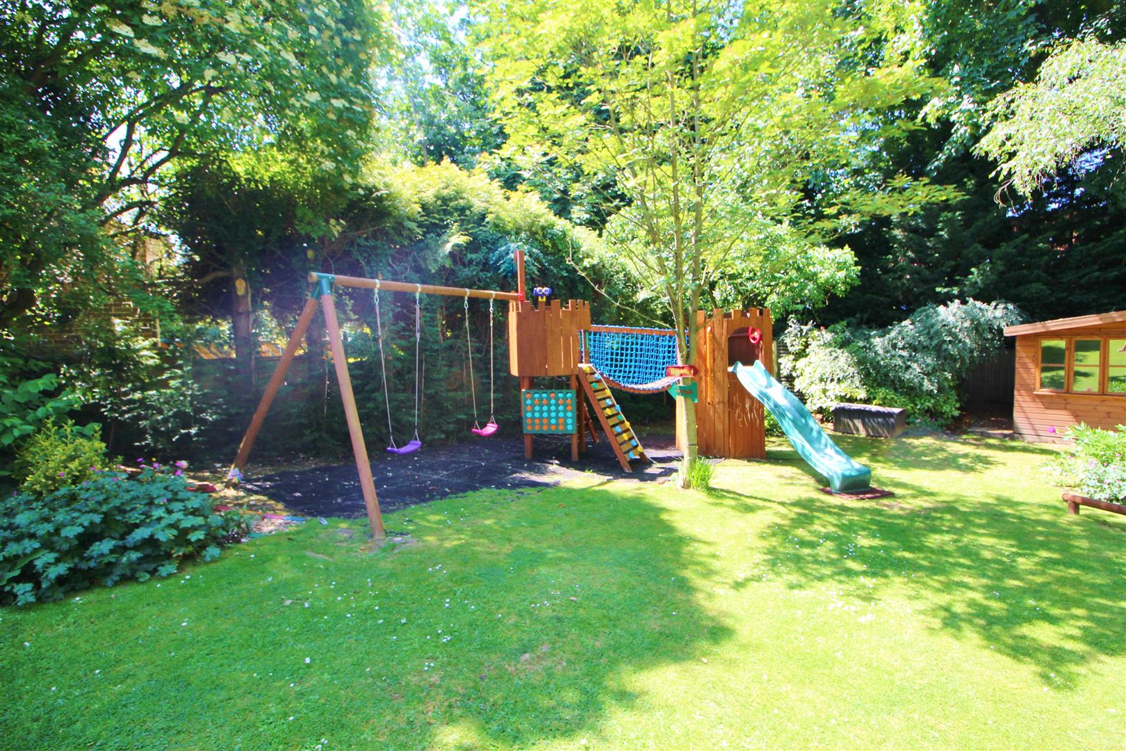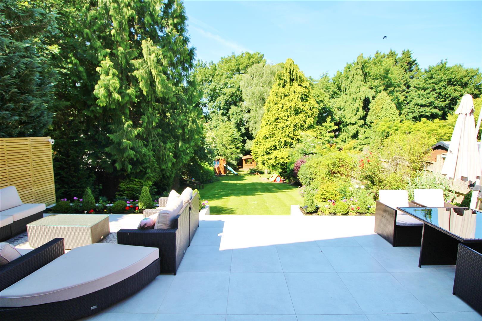 To rear is a beautifully landscaped mature west facing lawned garden which includes a large terrace seating area and play area as well as large lawn.