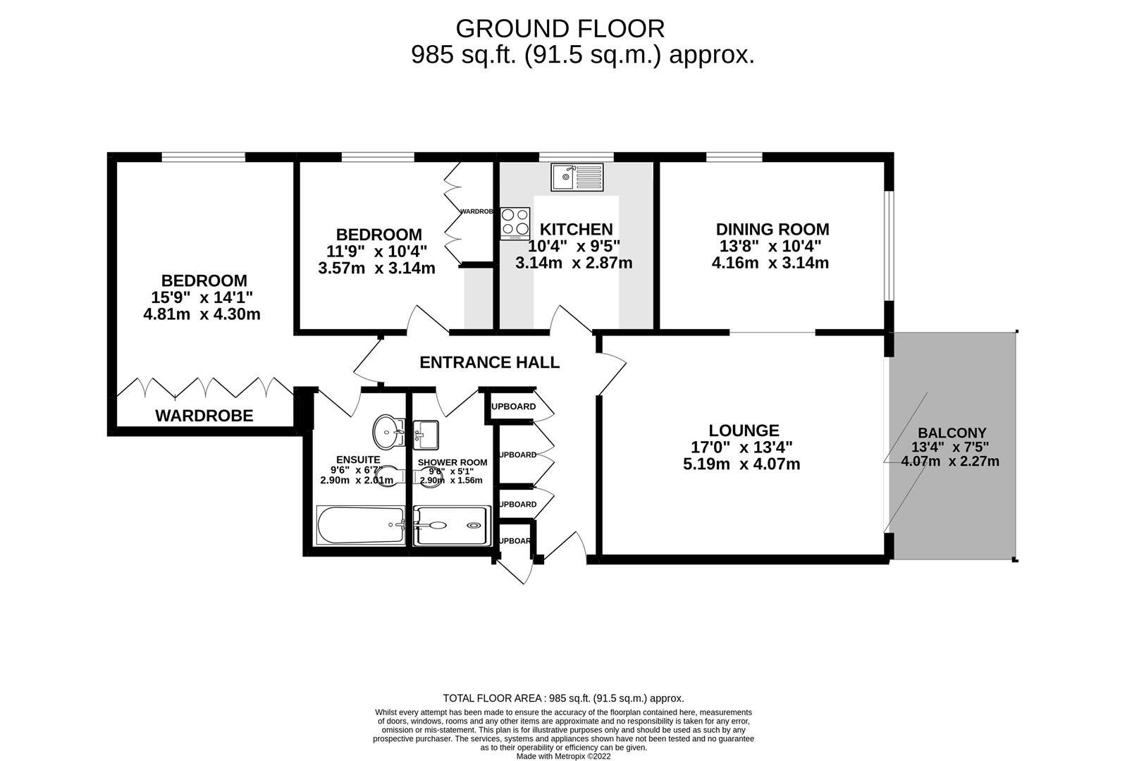 The accommodation consists of lounge, dining room, kitchen, master bedroom with en-suite and fitted wardrobes, a large second bedroom with fitted wardrobes and separate bathroom. There is outside space on the balcony off the lounge and the manicured communal gardens.