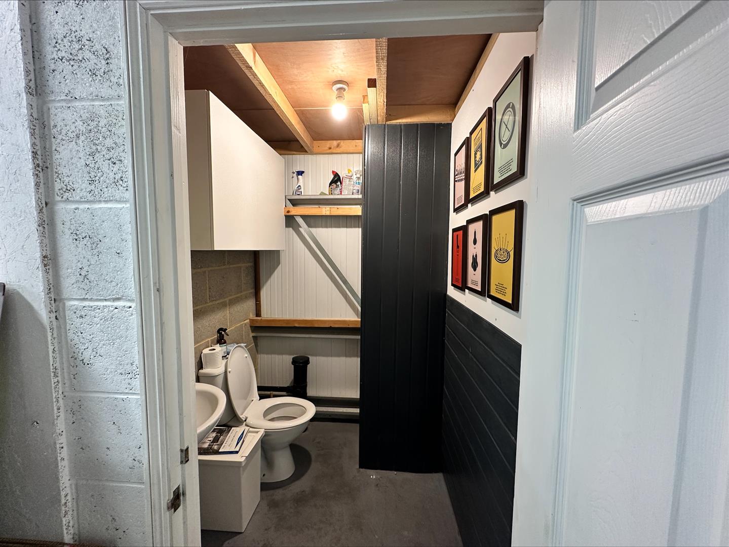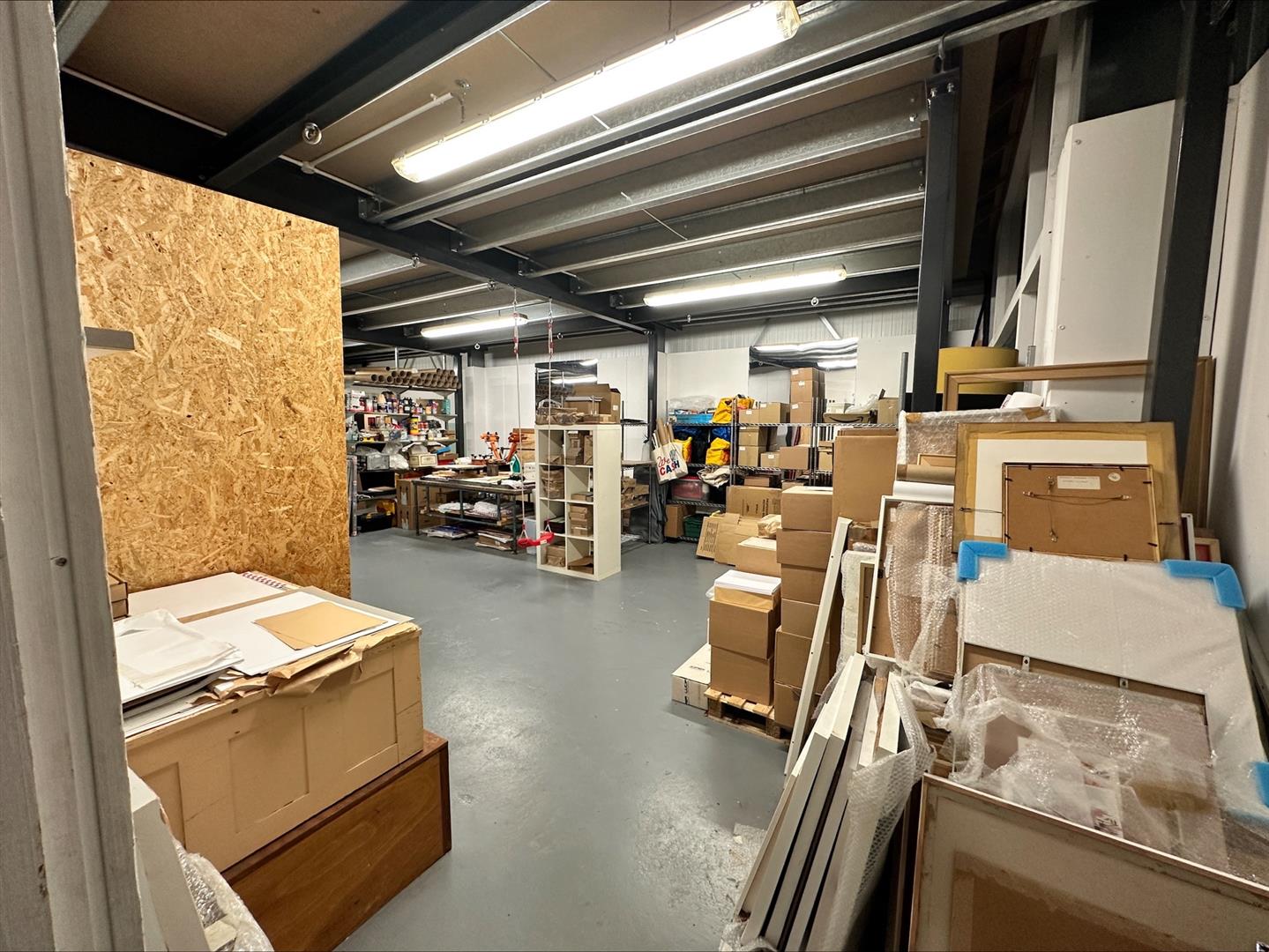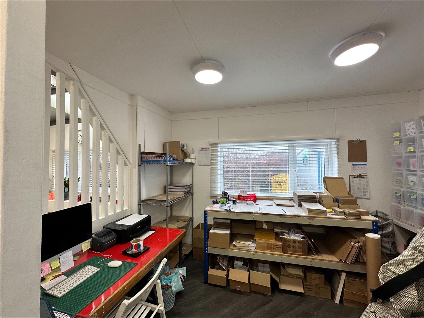 Upstairs, the mezzanine floor offers an impressive amount of additional space. This includes a large main office, two private offices, and a dedicated storage room, making it well suited for businesses needing quiet working areas alongside operational space. Power sockets are fitted throughout the upper floor to comfortably support modern office use.