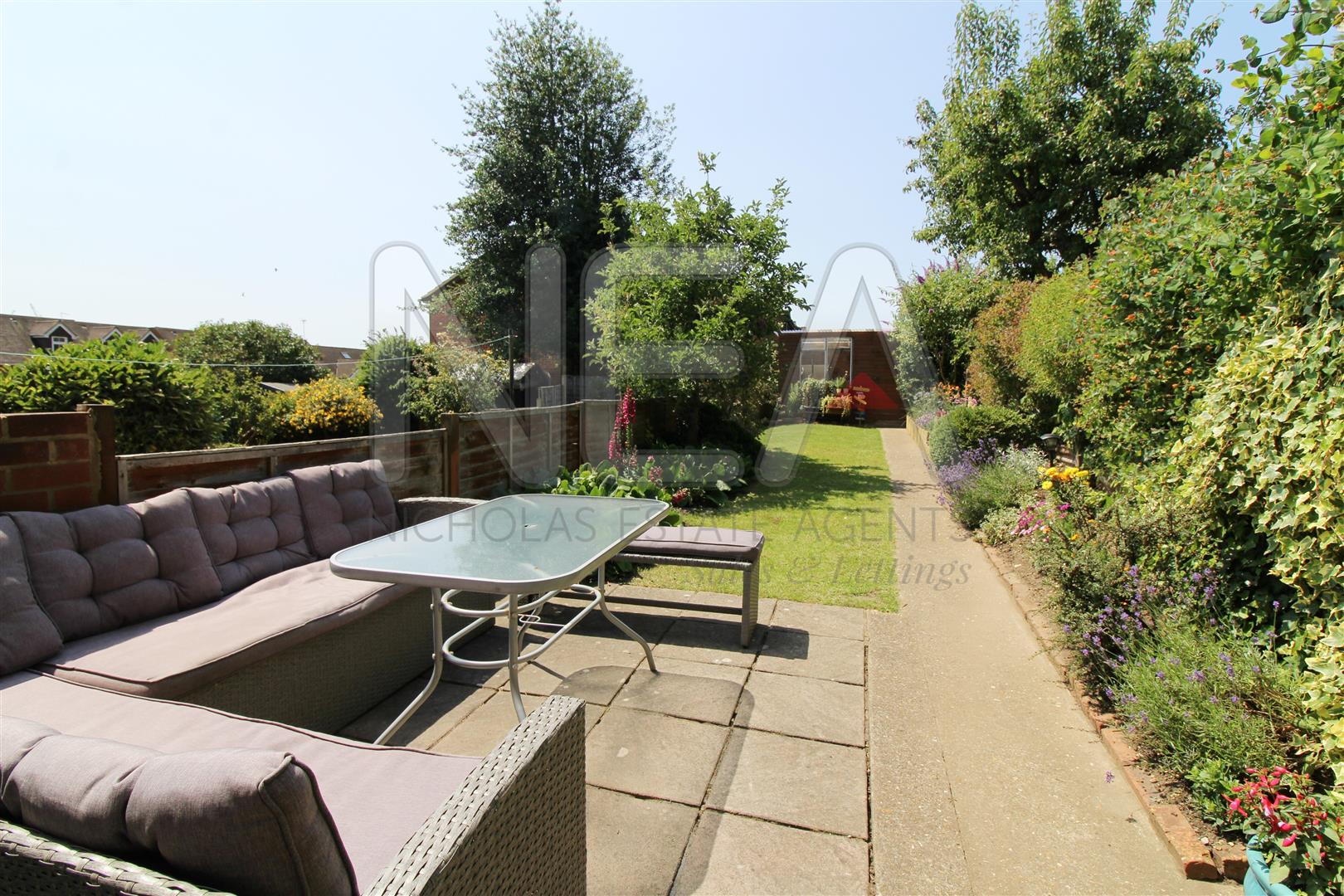 This well maintained garden with a southerly aspect comprises of a spacious lawn area, with a large shed at the end of the garden and paved area, ideal for summer BBQs.