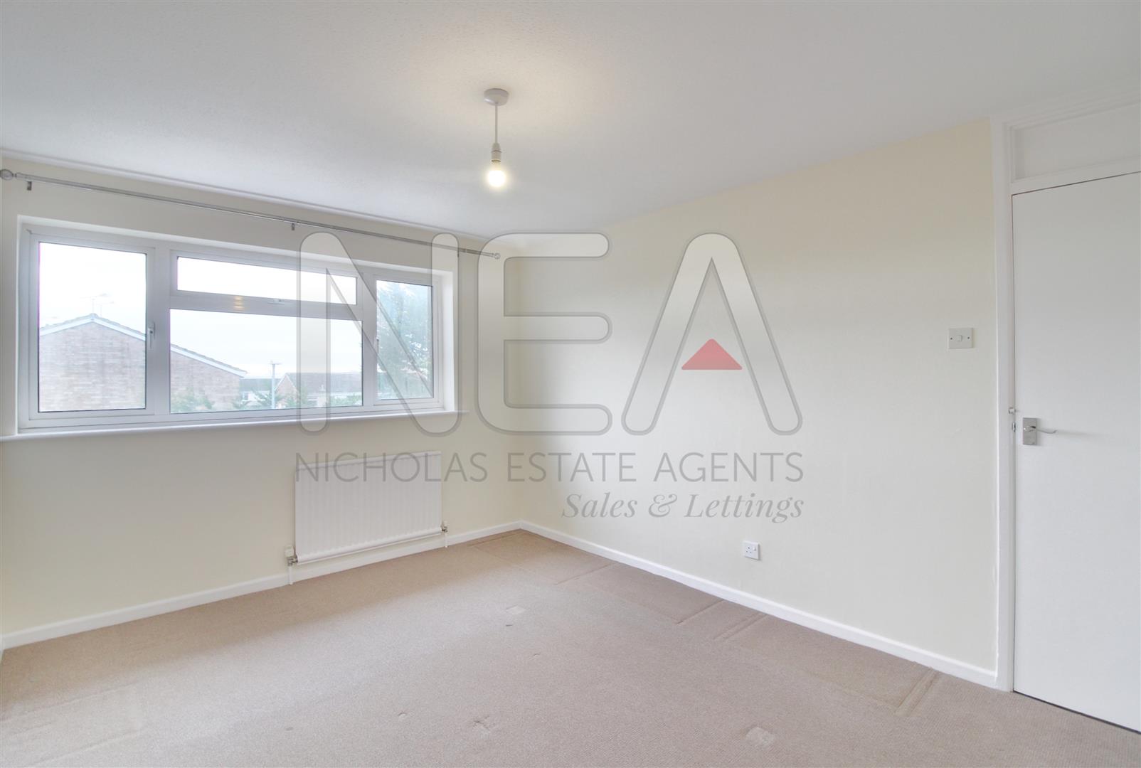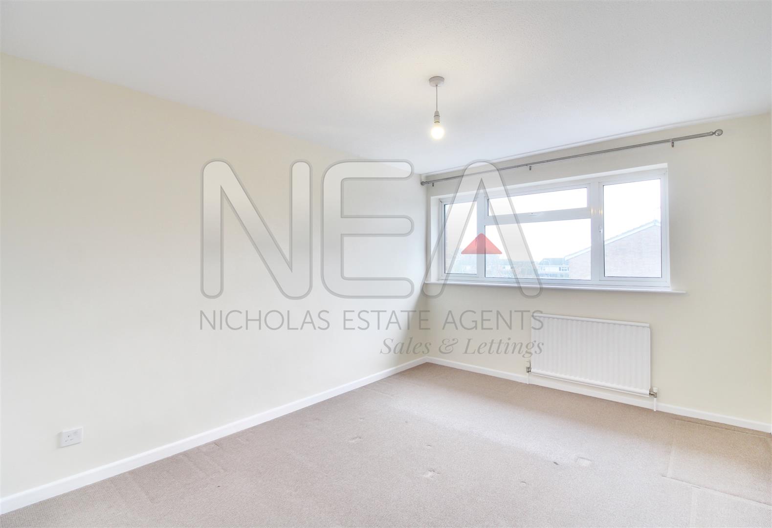 Large carpeted double bedroom with built in wardrobe. Windows looking to front of property.