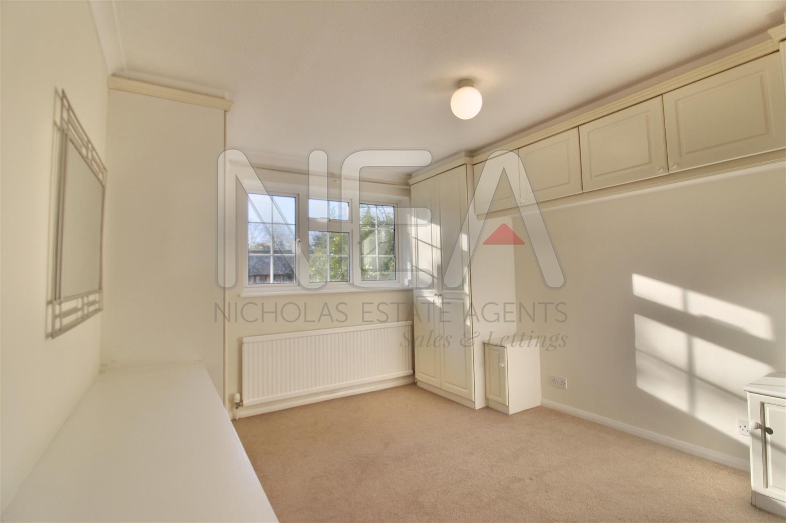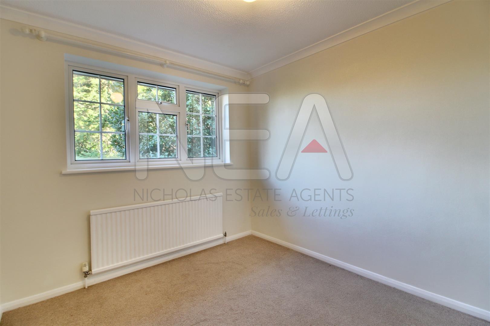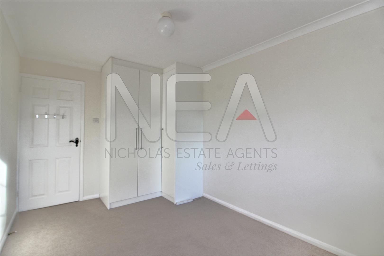Double carpeted bedroom at rear of the property, with windows overlooking the garden and a built in wardrobe with shelving.