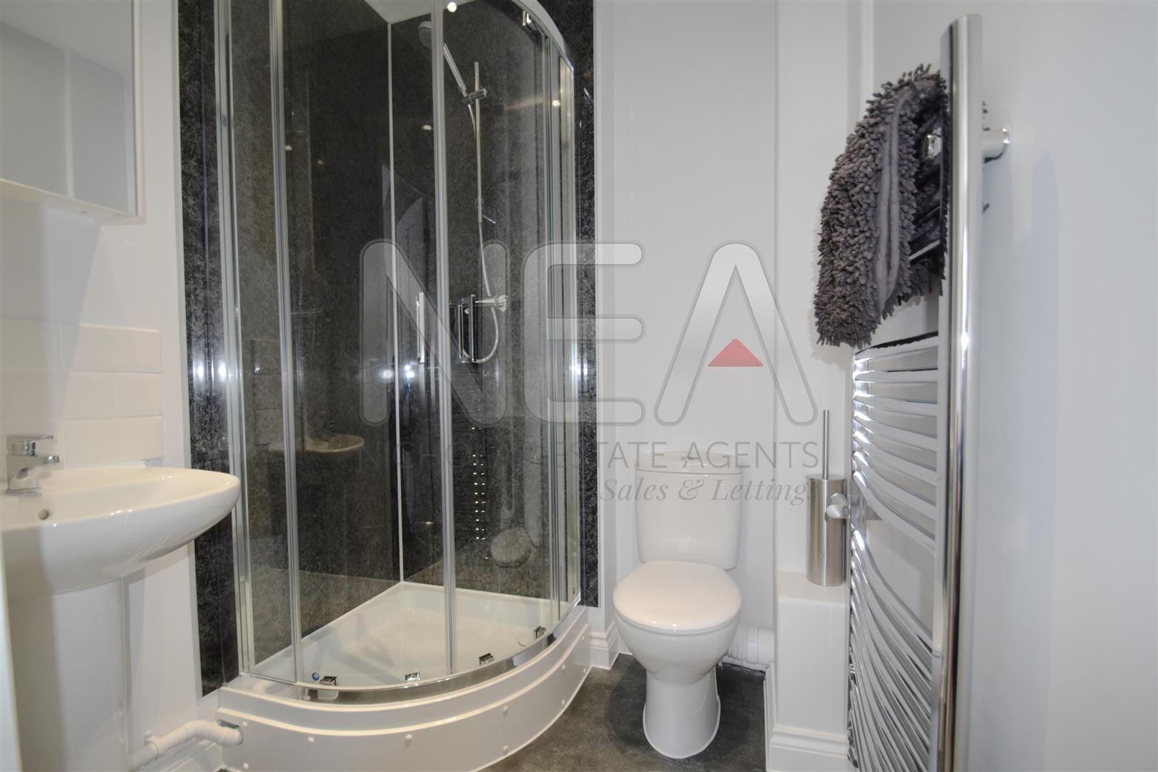 Light and airy double bedroom with double glazed windows to the front, radiator, carpeted door to ensuite. The furniture in the room includes a double bed, 2 bedside cabinets, a desk and chair, a wardrobe and mirror. Modern stylish en-suite comprising of shower cubicle with chrome wall mounted fittings, low level WC, wash basin with mixer tap, chrome heated towel rail, ceiling lights and extractor.