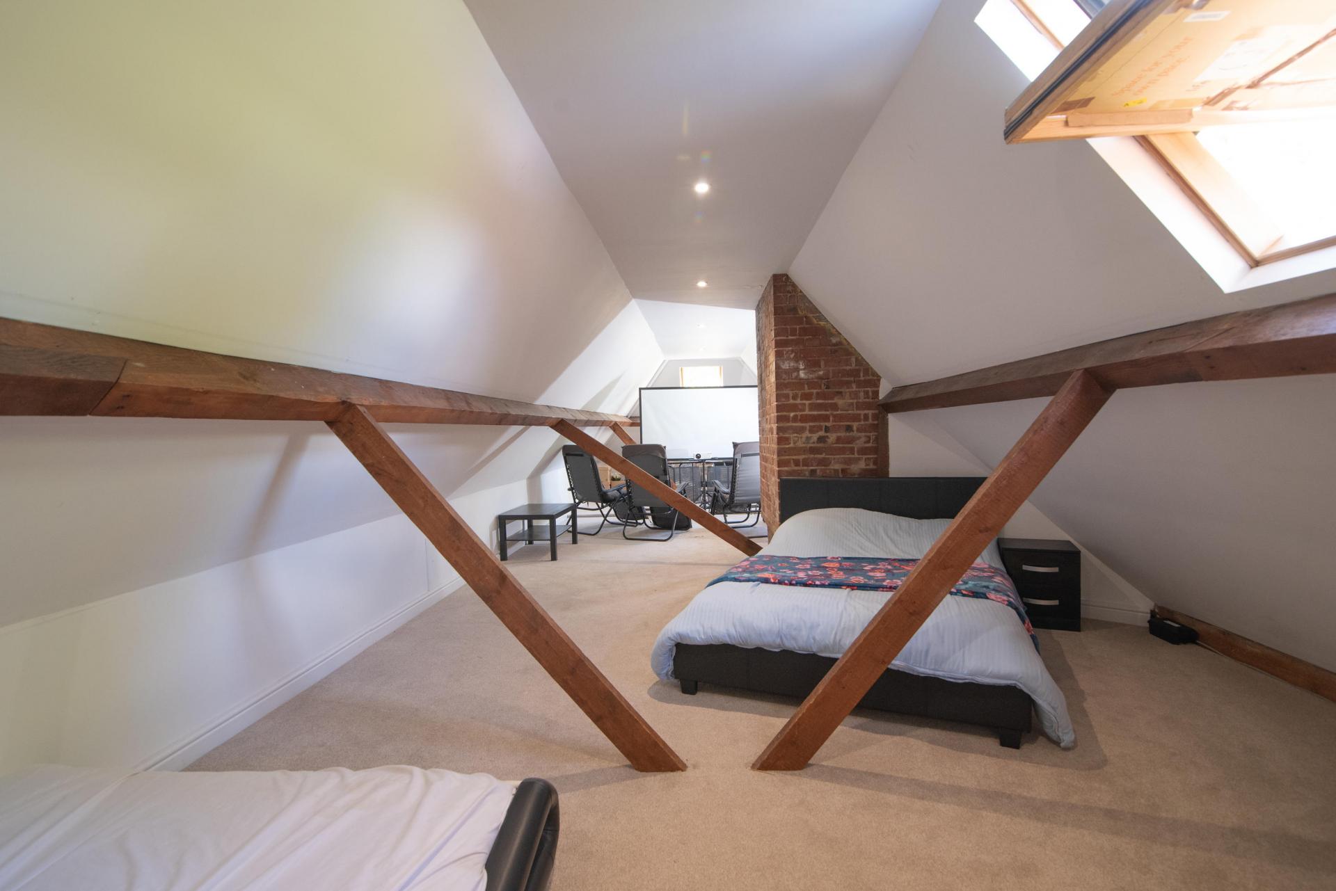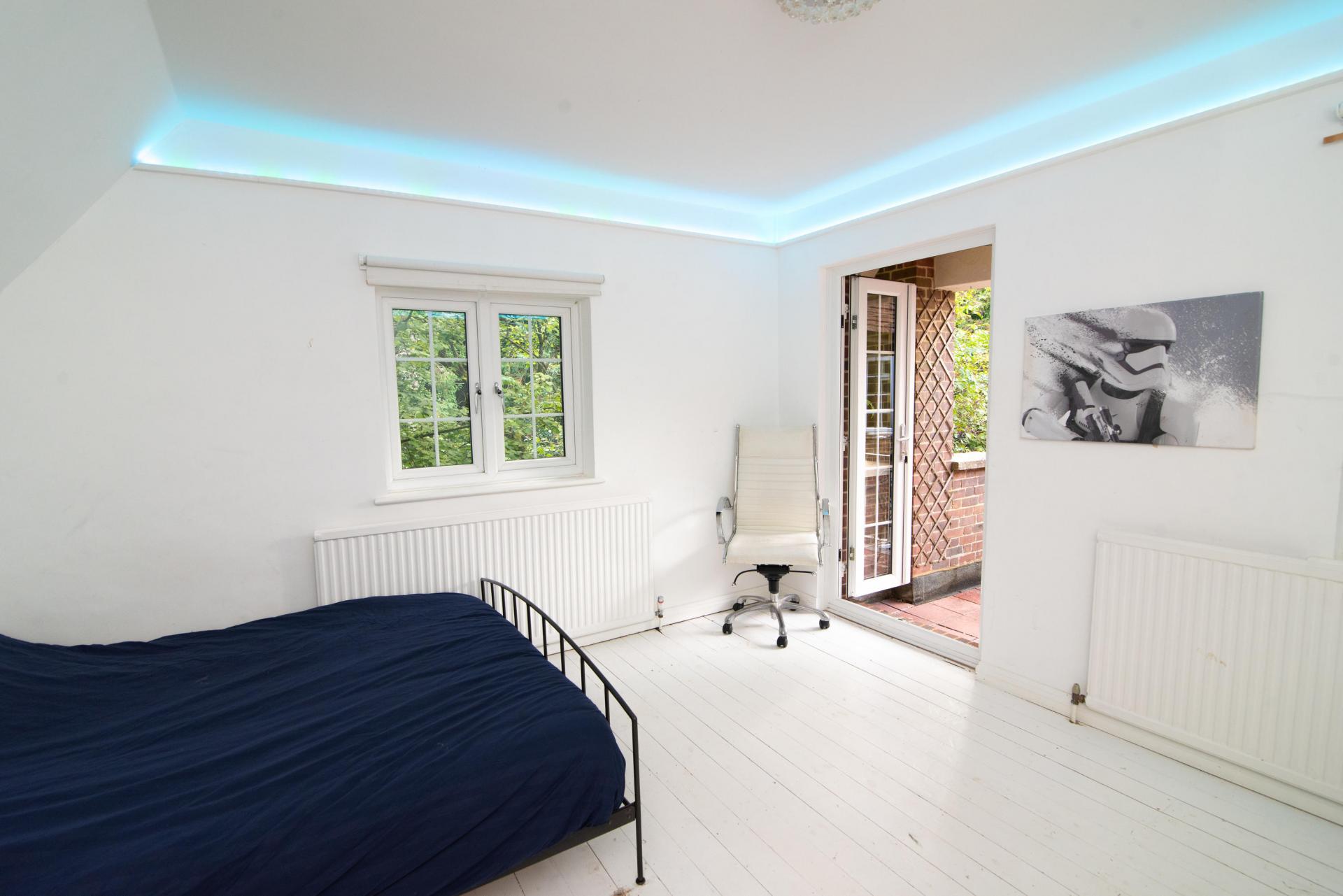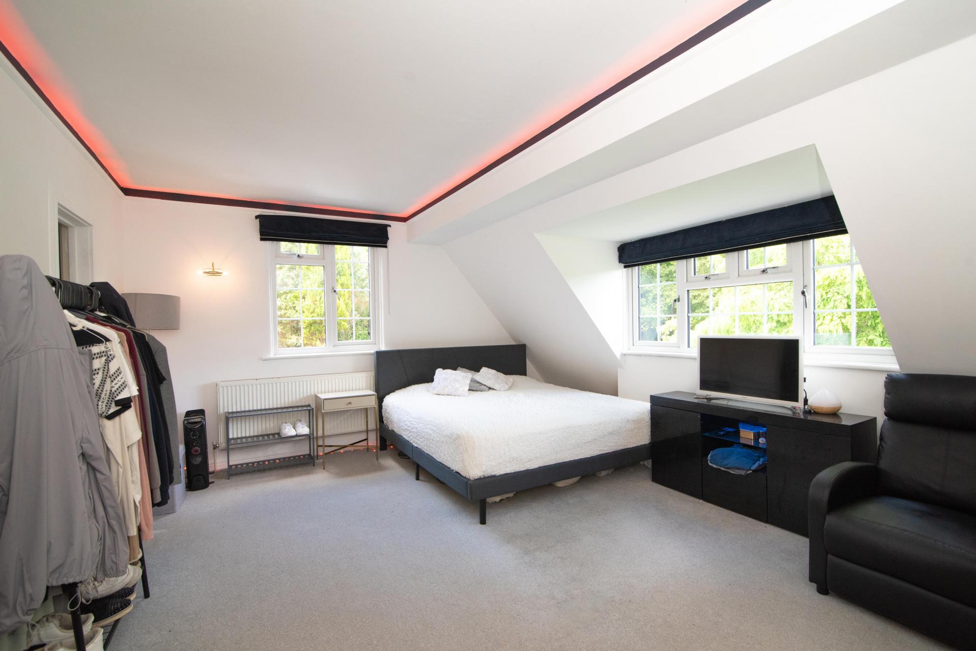 Upstairs, the property boasts five generous double bedrooms, three of which benefit from stylish en-suite bathrooms. Two bedrooms enjoy private balcony terraces, perfect for relaxing and taking in the tranquil surroundings. A family bathroom, separate WC, and access to a versatile loft room—currently used as a private home cinema—complete the upper level. The size and layout of the home also offer exciting potential for independent living areas at either end of the house.