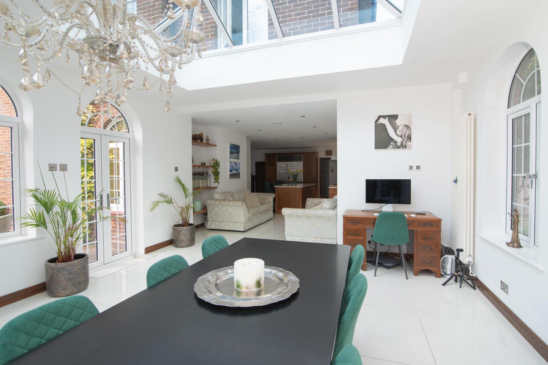 Designed with both family living and entertaining in mind, the property provides an abundance of elegant indoor and outdoor spaces. Upon entry, you are greeted by three impressive and light-filled reception rooms, each opening directly onto the garden, creating a seamless connection between inside and out.