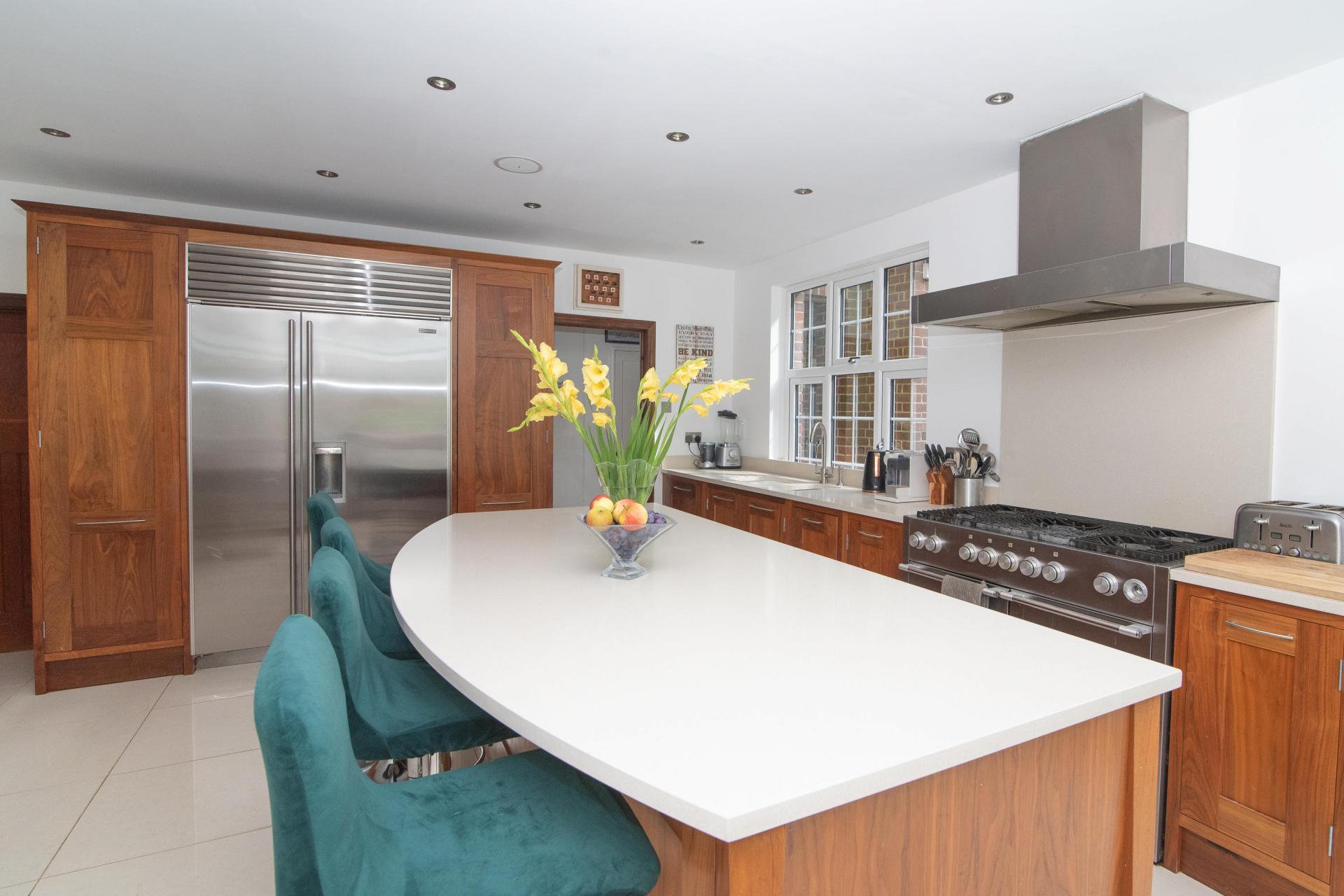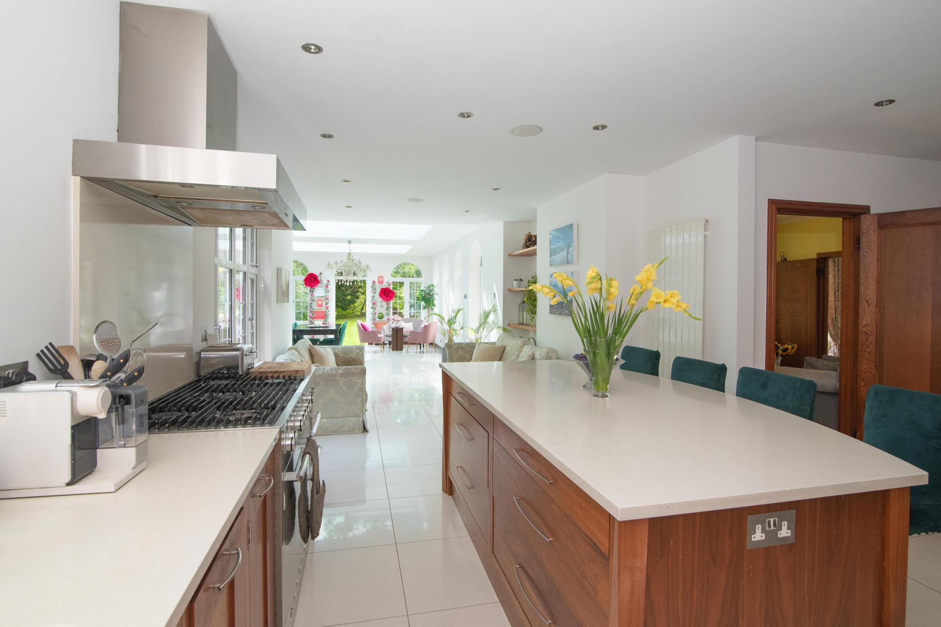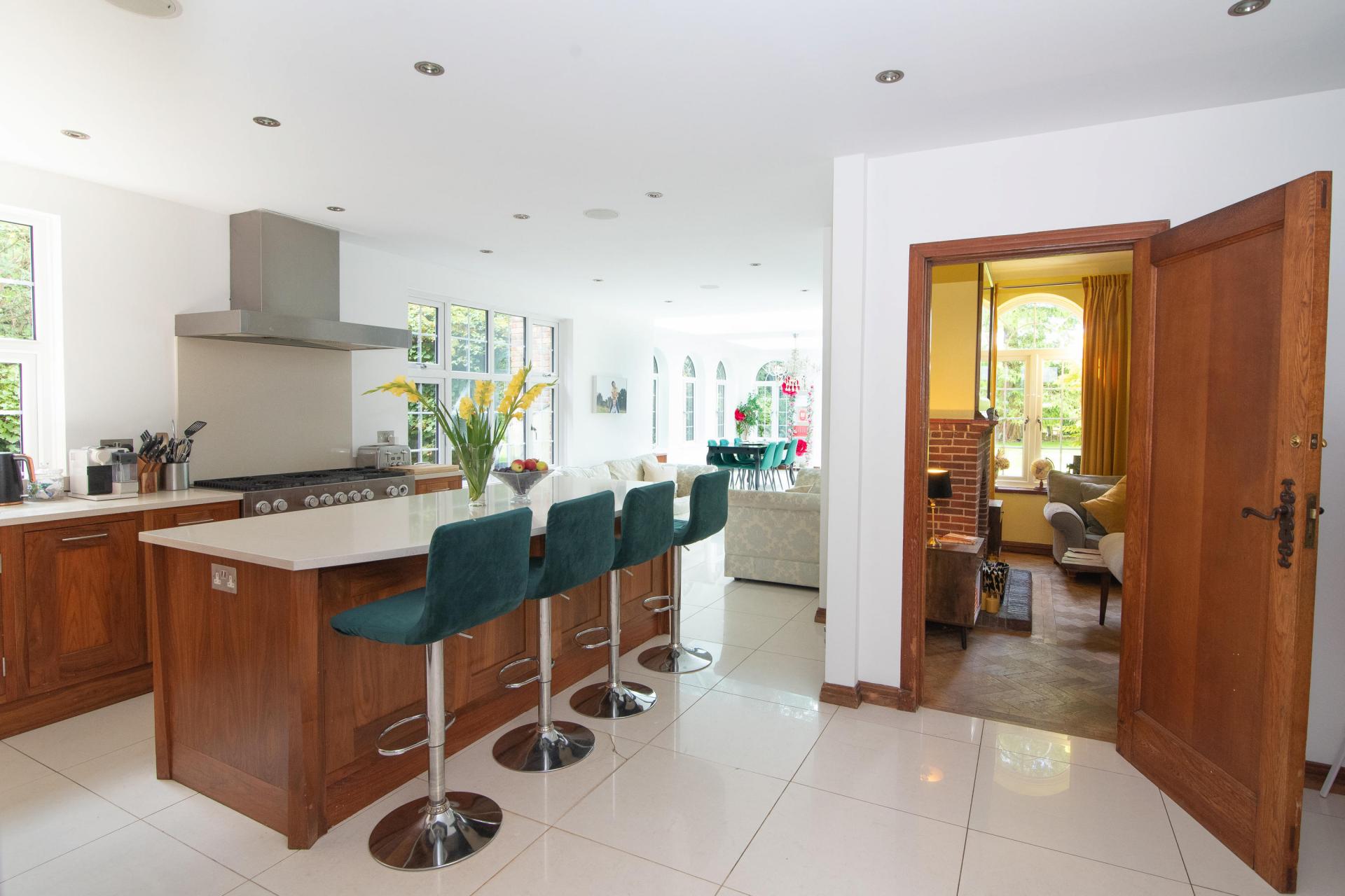 The fully fitted kitchen is the heart of the home, flowing effortlessly into a spacious dining area with stunning views across the garden. Generous storage and thoughtful design make this space as practical as it is beautiful.